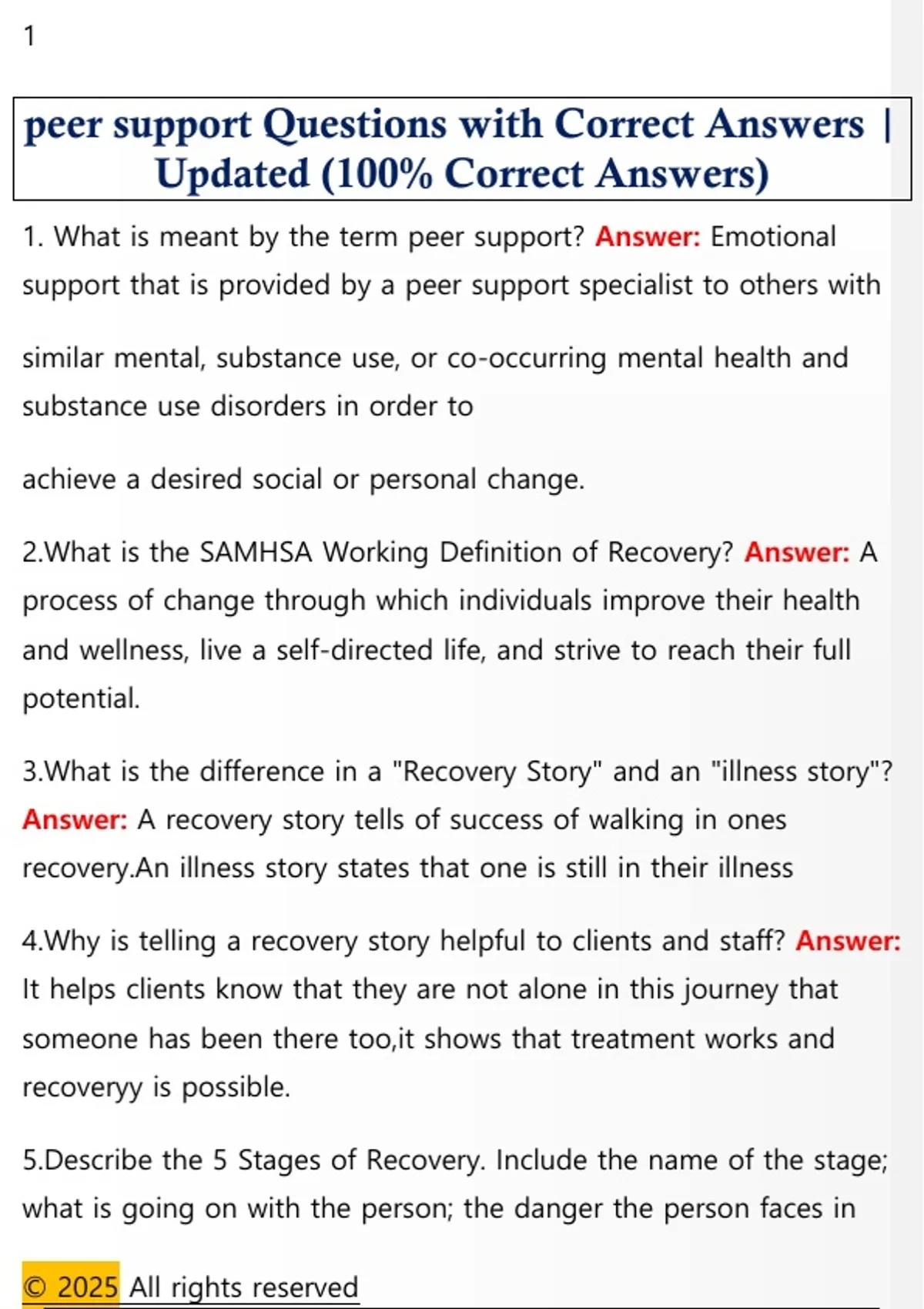 peer support Questions with Correct Answers |