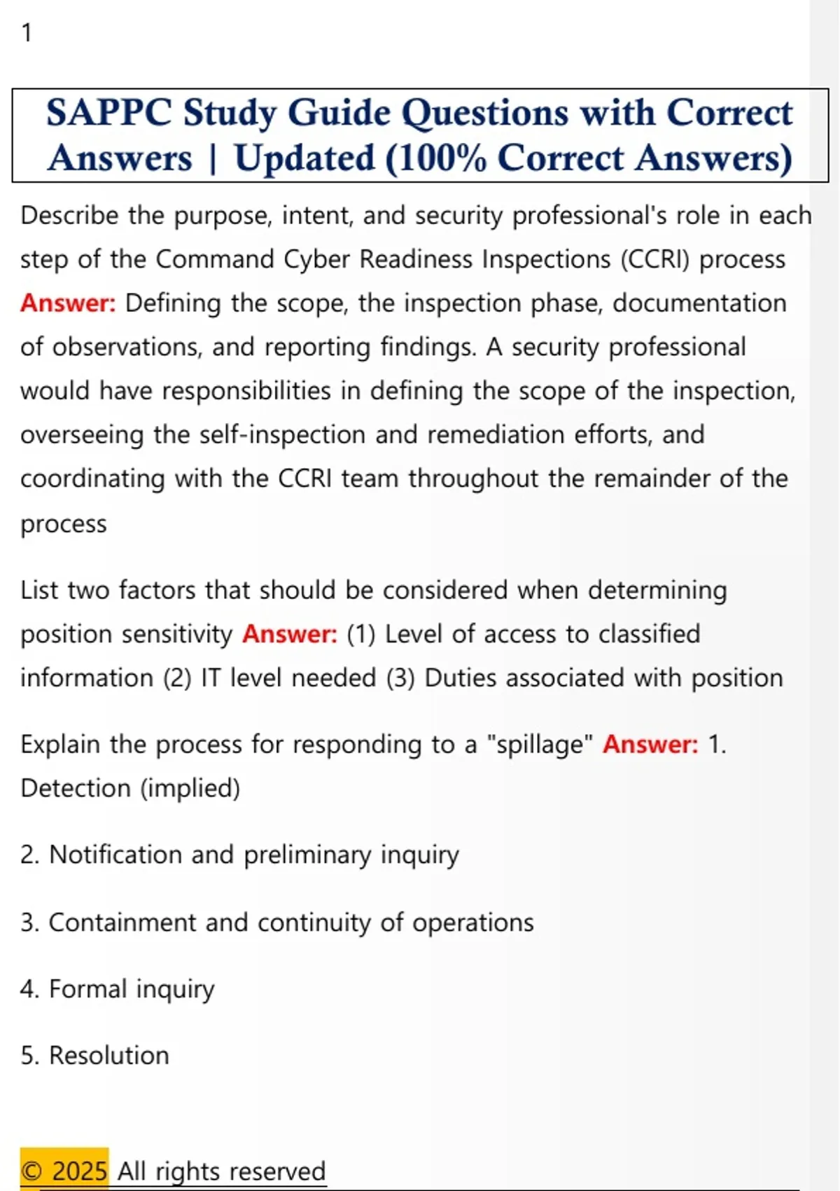 SAPPC Study Guide Questions with Correct