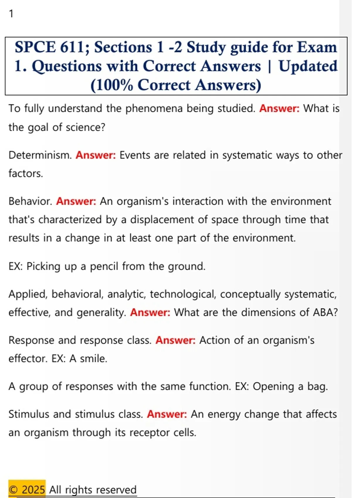 SPCE 611; Sections 1 -2 Study guide for Exam 1. Questions with Correct Answers | Updated (100% Correct Answers)