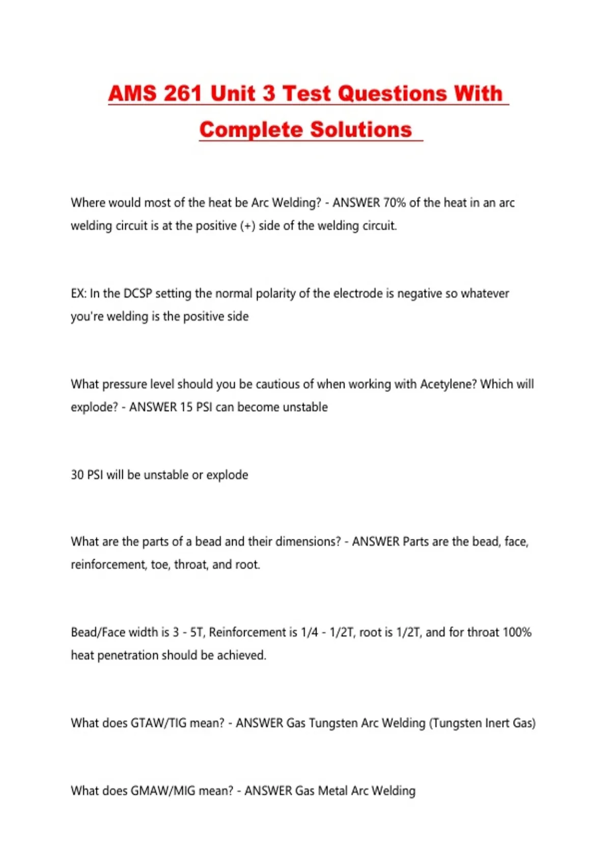 What does GTAW/TIG mean? - ANSWER Gas Tungsten Arc Welding (Tungsten Inert Gas)