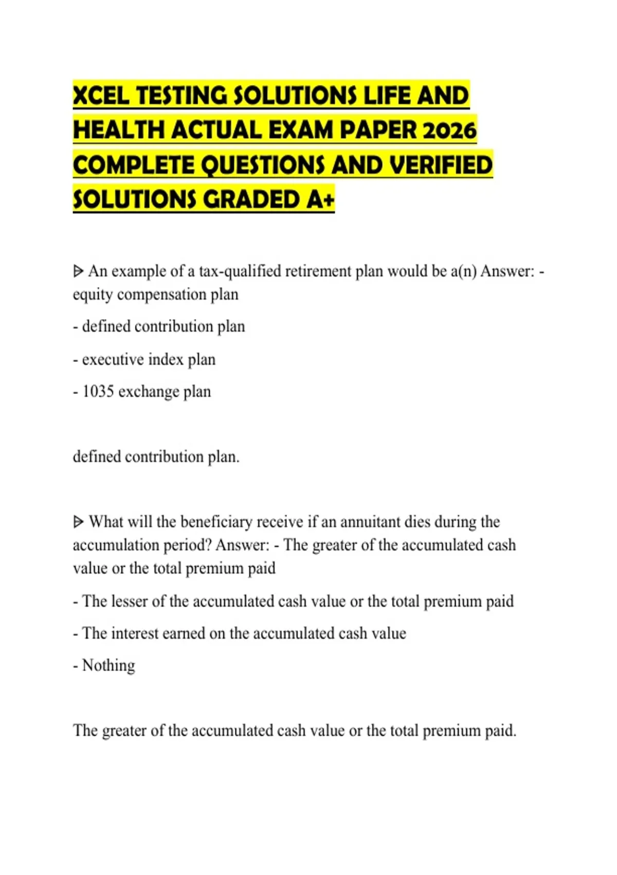 ⩥ An example of a tax-qualified retirement plan would be a(n) Answer: -