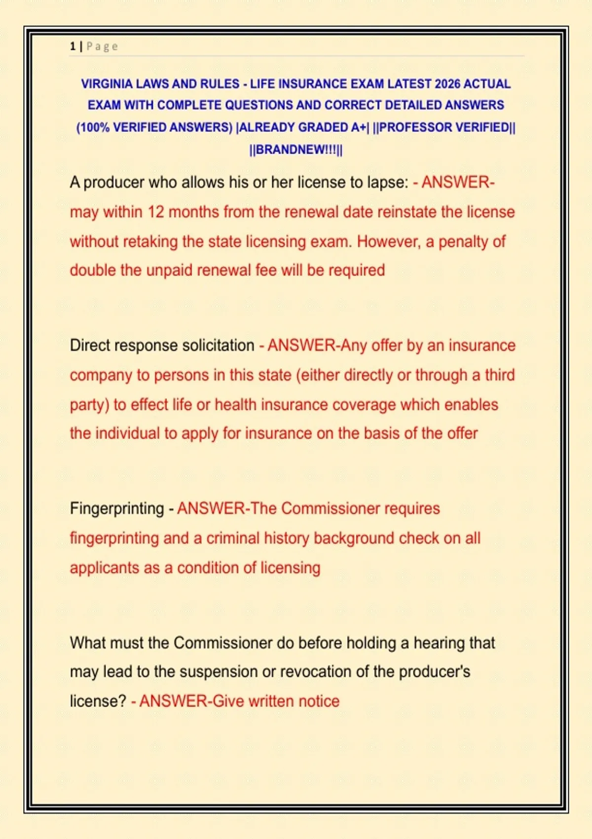 VIRGINIA LAWS AND RULES - LIFE INSURANCE EXAM LATEST 2026 ACTUAL EXAM WITH COMPLETE QUESTIONS AND CORRECT DETAILED ANSWERS (100% VERIFIED ANSWERS) |ALREADY GRADED A+| ||PROFESSOR VERIFIED|| ||BRANDNEW!!!||