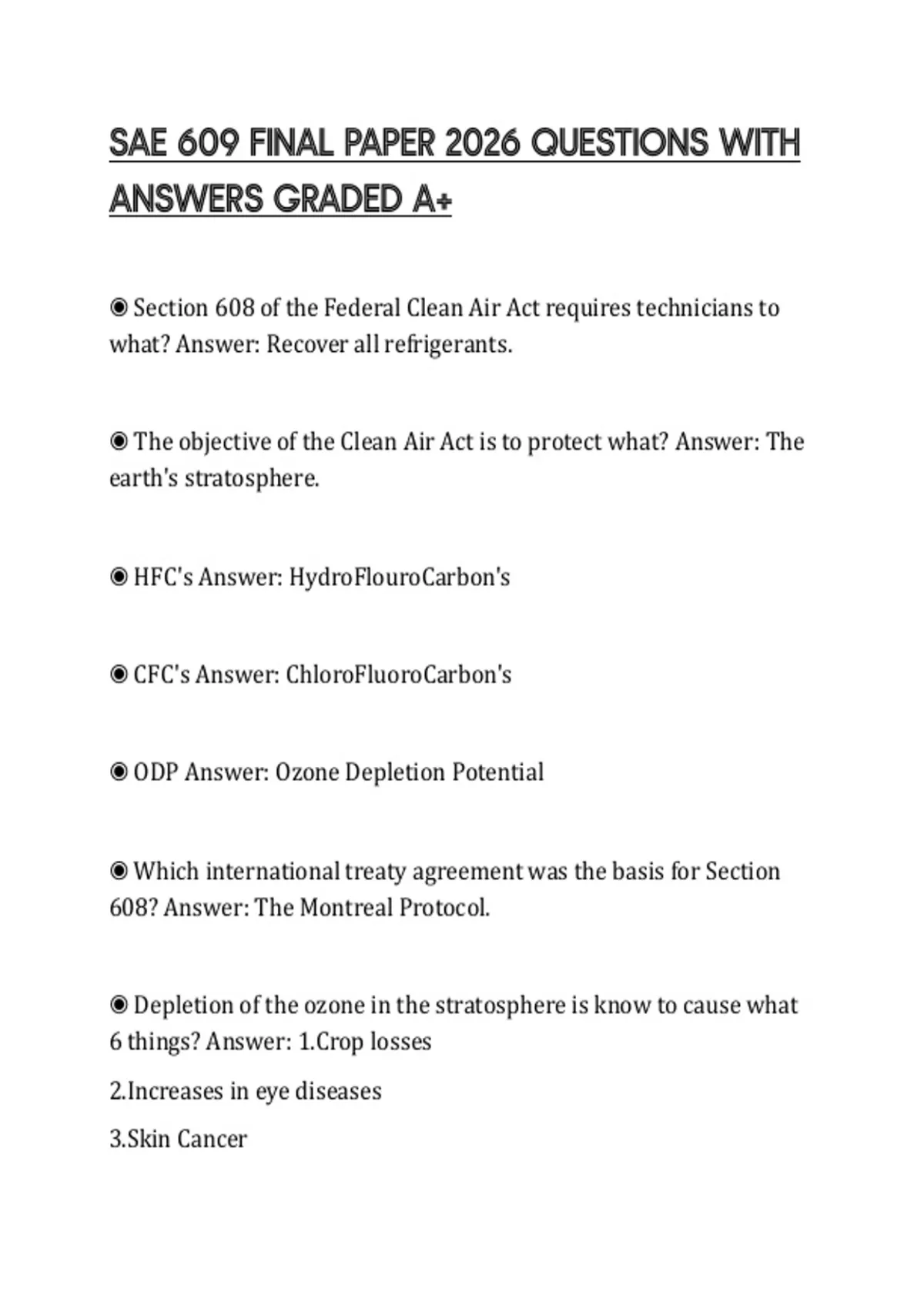 SAE 609 FINAL PAPER 2026 QUESTIONS WITH