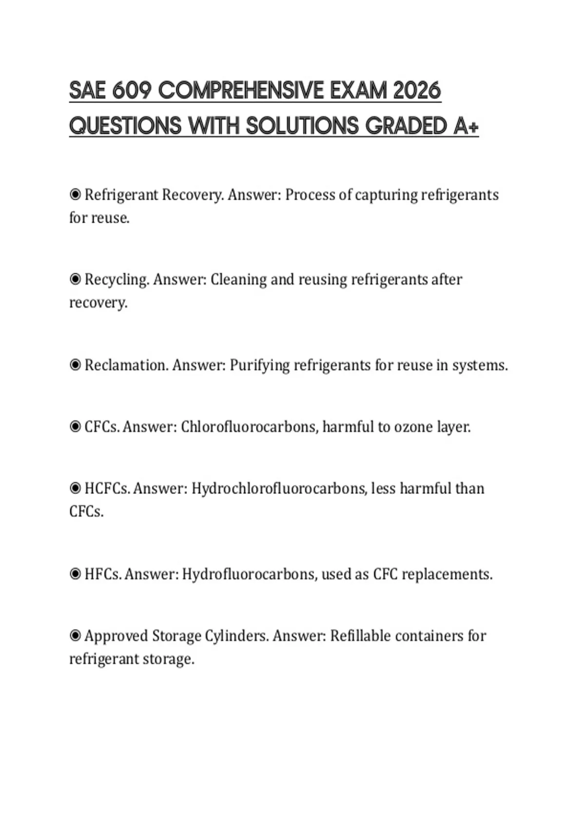◉ Refrigerant Recovery. Answer: Process of capturing refrigerants