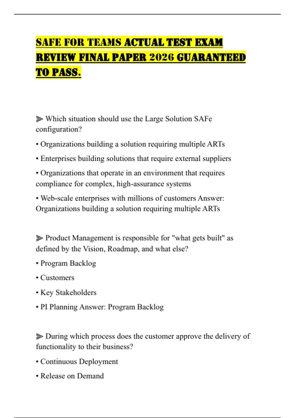 ⫸ Which situation should use the Large Solution SAFe