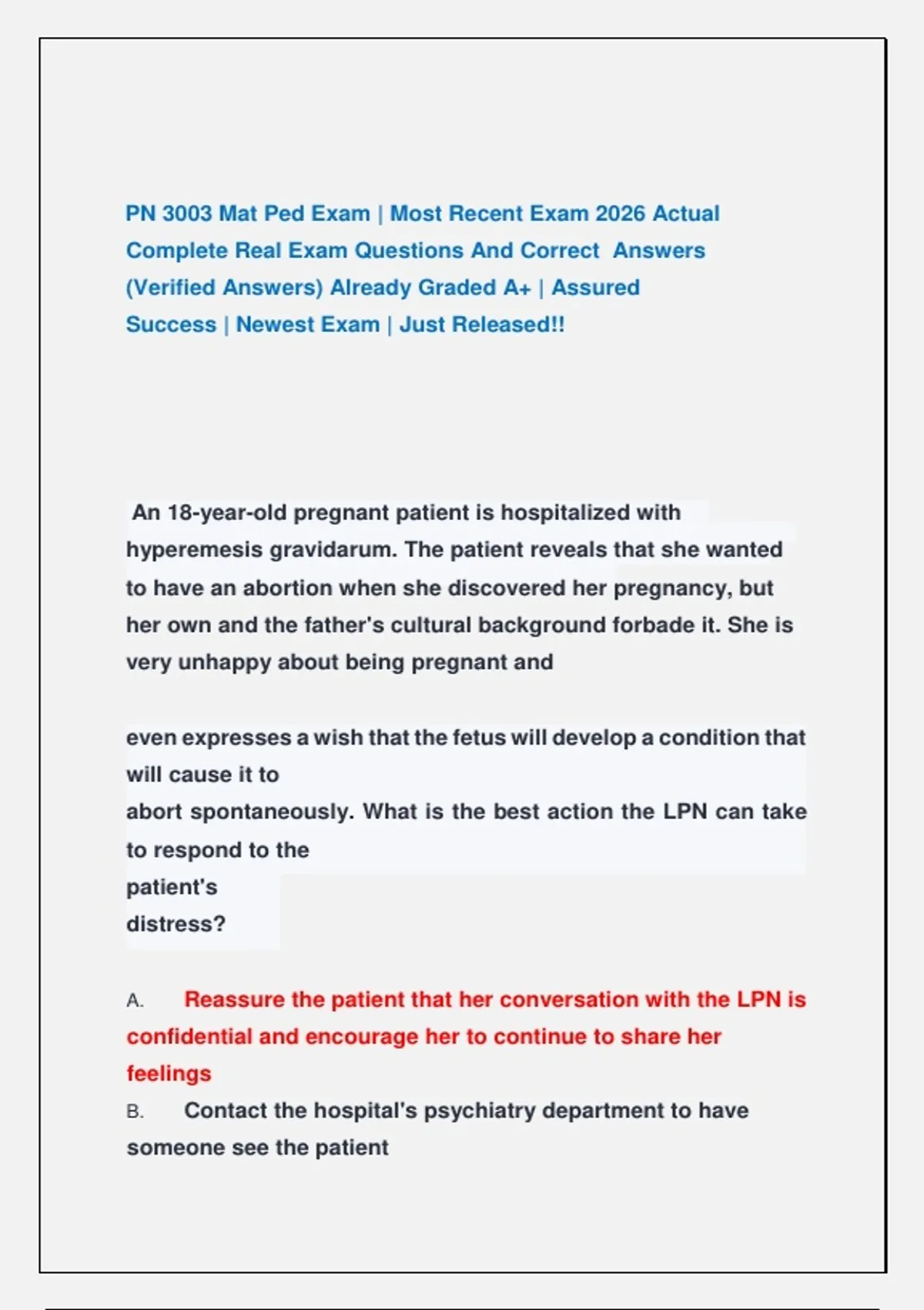 PN 3003 Mat Ped Exam | Most Recent Exam 2026 Actual Complete Real Exam Questions And Correct Answers (Verified Answers) Already Graded A+ | Assured Success | Newest Exam | Just Released!! PN 3003 Mat Ped Exam | Most Recent Exam 2026 Actual Complete Real Exam Questions And Correct Answers (Verified Answers) Already Graded A+ | Assured Success | Newest Exam | Just Released!! PN 3003 Mat Ped Exam | Most Recent Exam 2026 Actual Complete Real Exam Questions And Correct Answers (Verified Answers) Already Graded A+ | Assured Success | Newest Exam | Just Released!! PN 3003 Mat Ped Exam | Most Recent Exam 2026 Actual Complete Real Exam Questions And Correct Answers (Verified Answers) Already Graded A+ | Assured Success | Newest Exam | Just Released!!