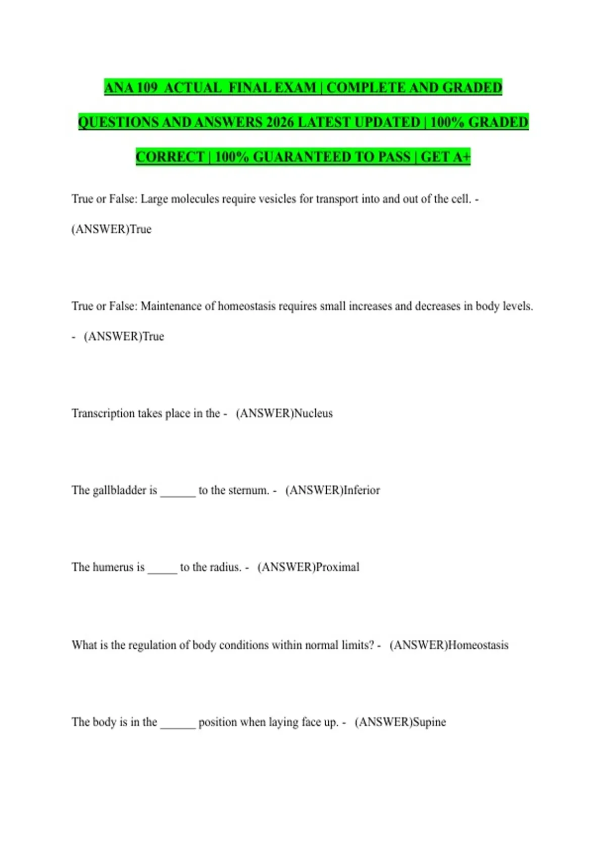 QUESTIONS AND ANSWERS 2026 LATEST UPDATED | 100% GRADED