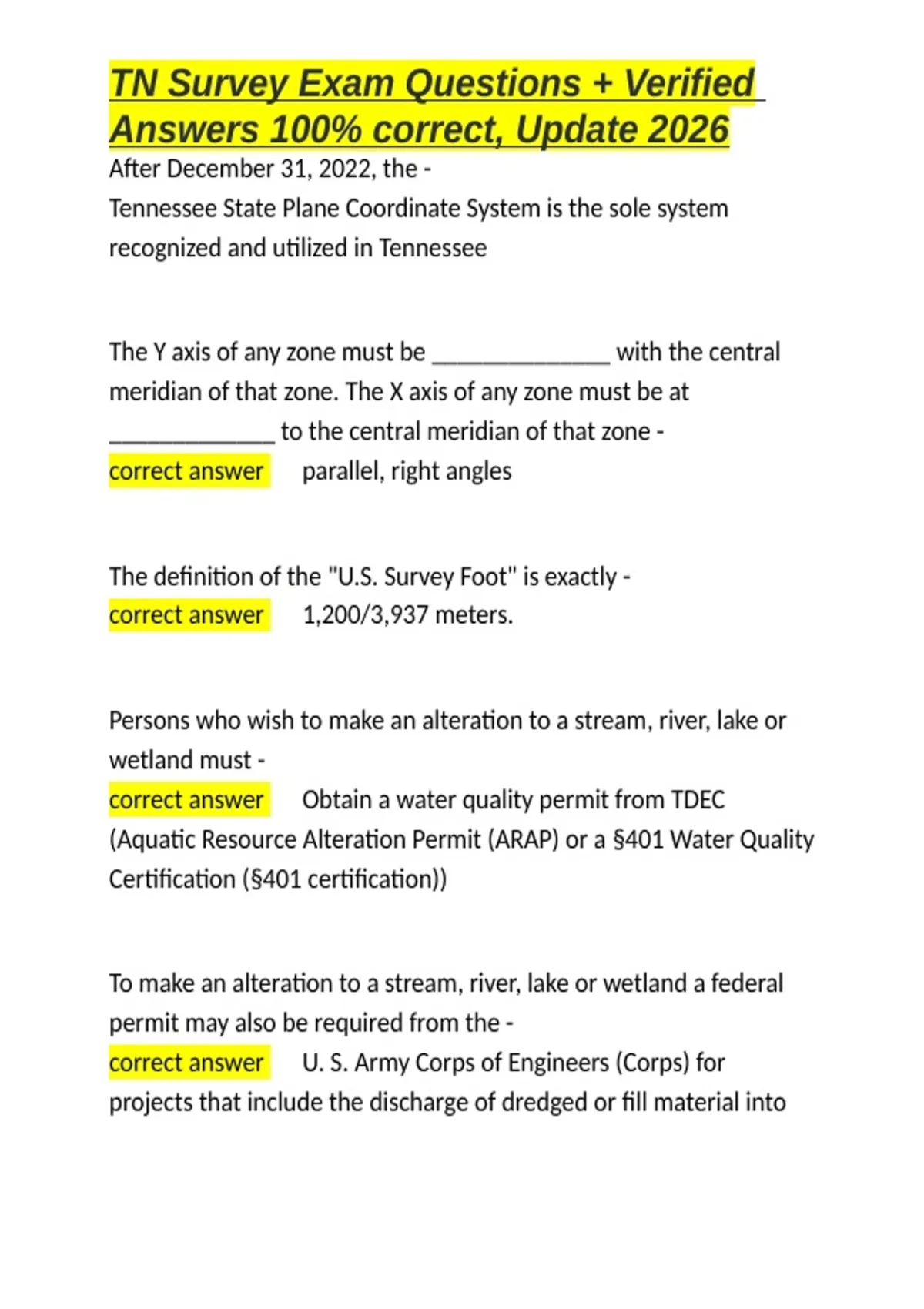 TN Survey Exam Questions + Verified Answers 100- correct, Update 2026.docx