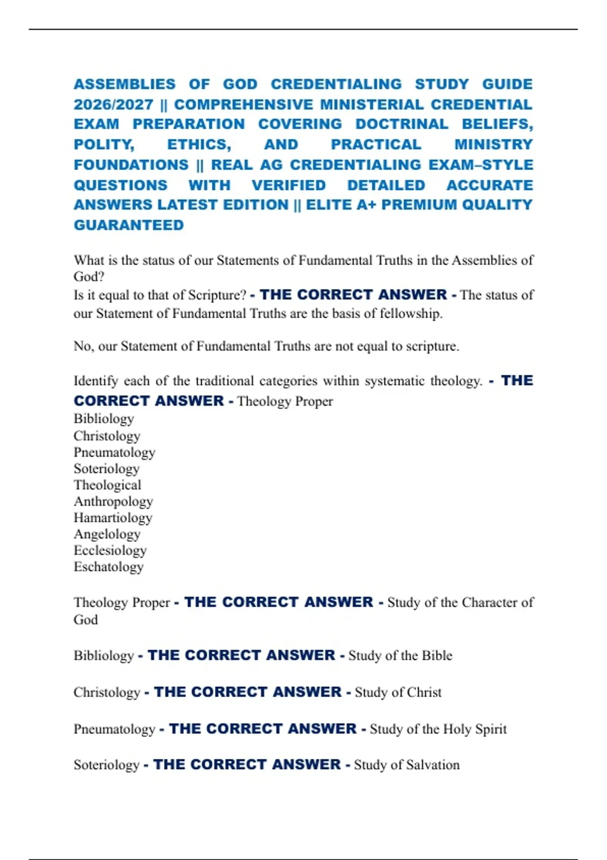EXAM PREPARATION COVERING DOCTRINAL BELIEFS,