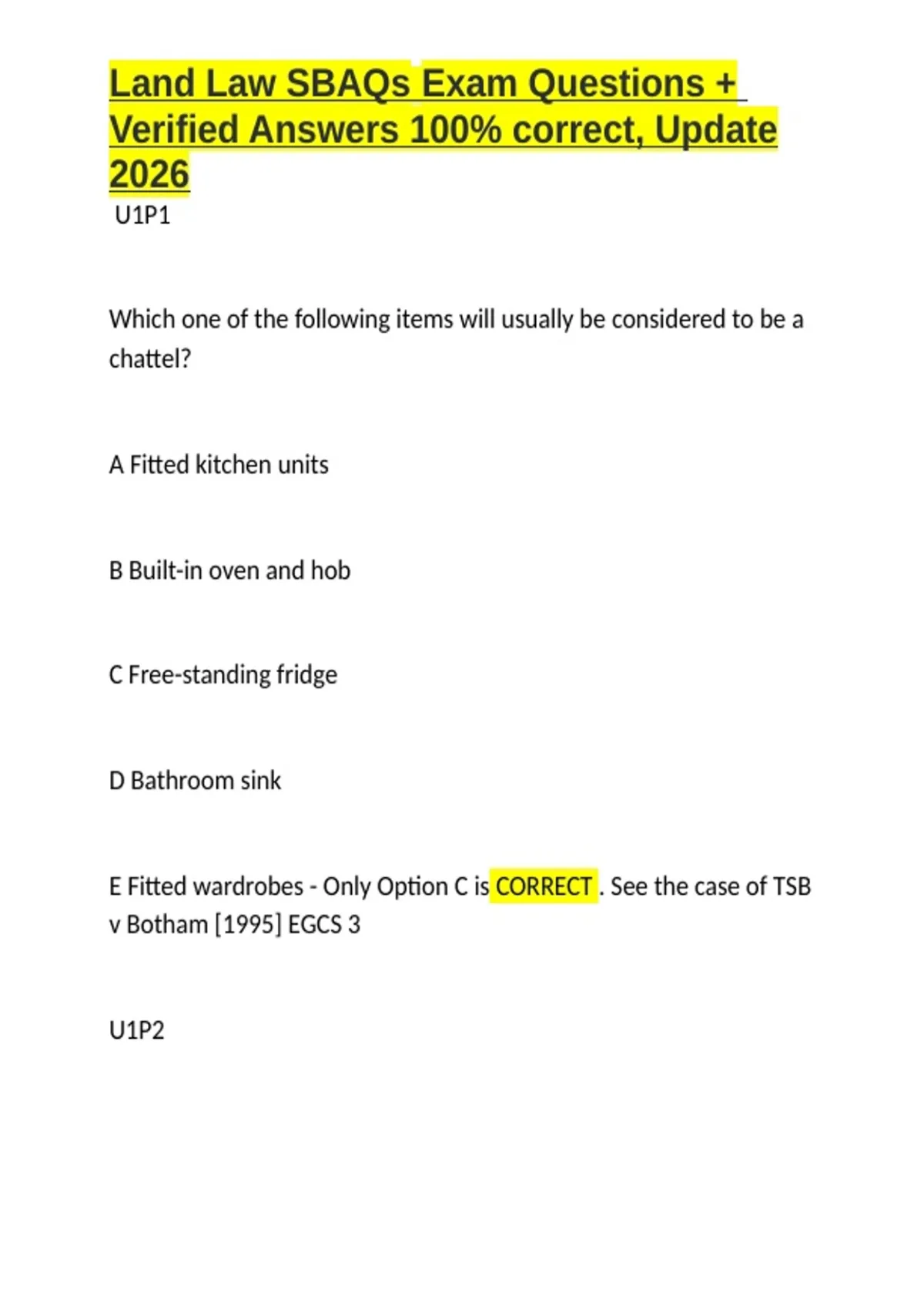 ,Land Law SBAQs Exam Questions +