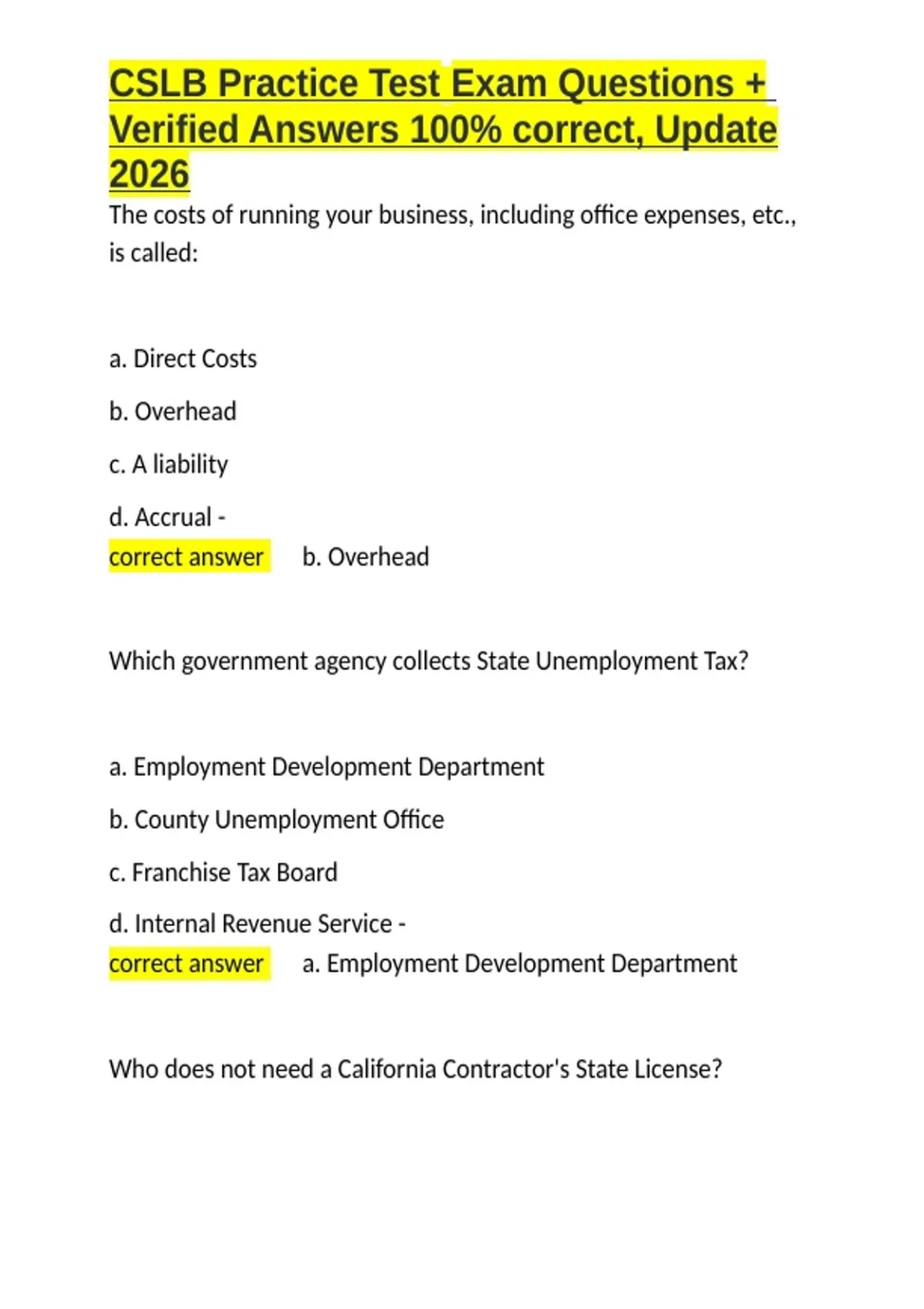 CSLB Practice Test Exam Questions + Verified Answers 100- correct, Update 2026.docxCSLB Practice Test Exam Questions + Verified Answers 100- correct, Update 2026.docx