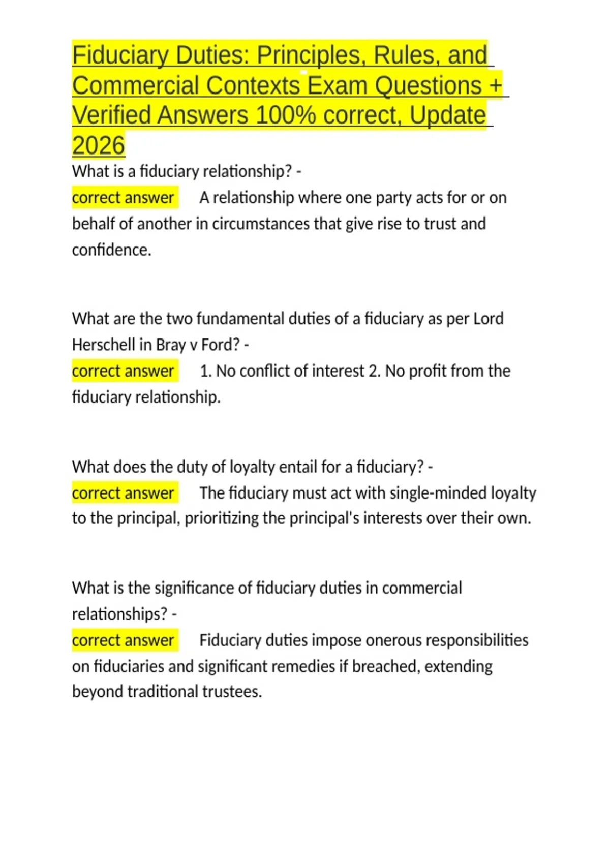correct answer ✅Fiduciary duties impose onerous responsibilities