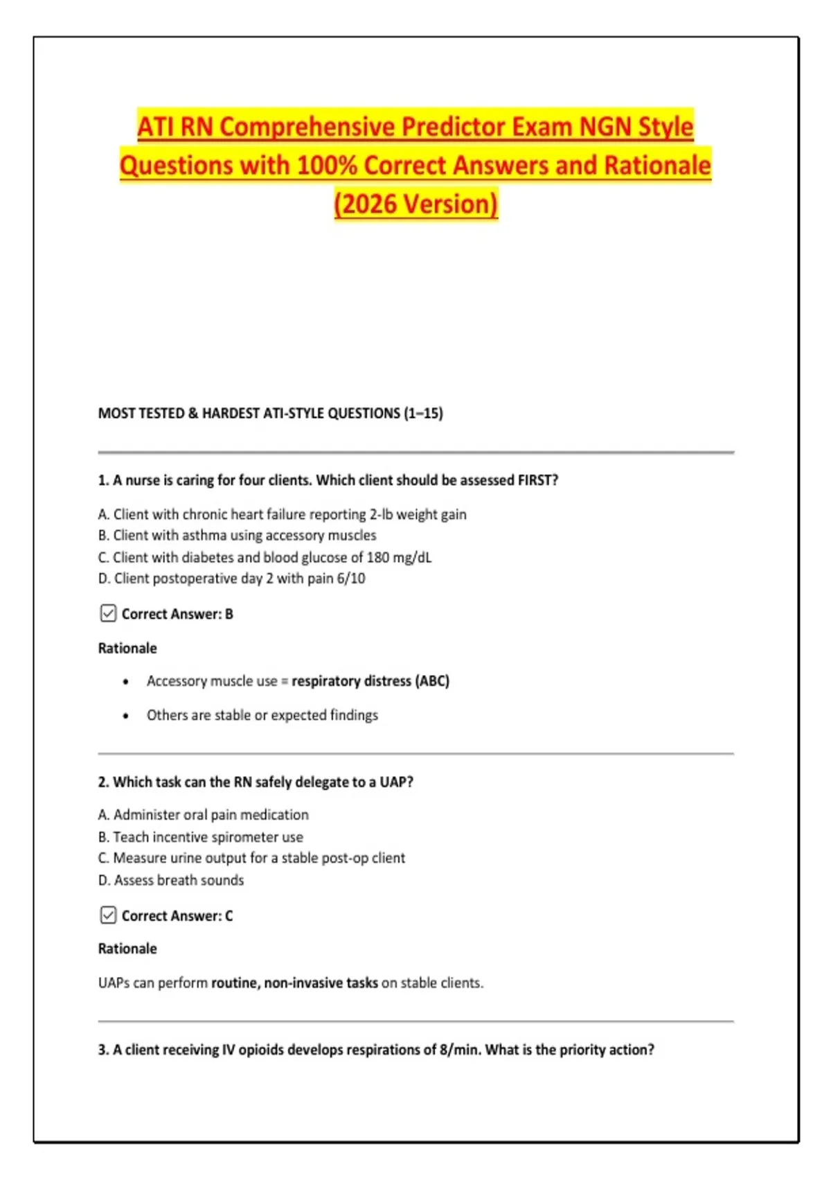 Questions with 100% Correct Answers and Rationale