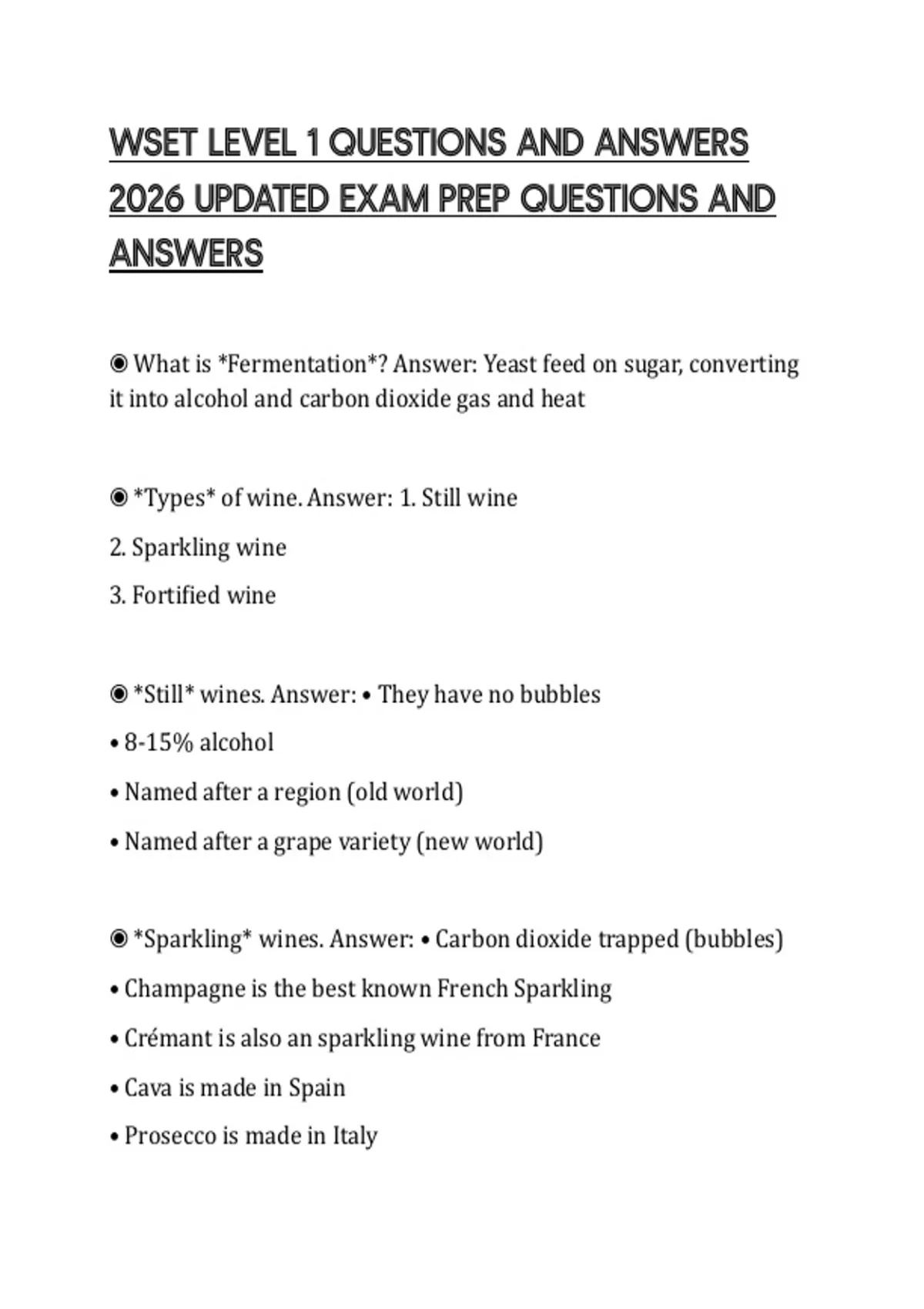 , ◉ *Dry* wines. Answer: • No sugar left during fermentation