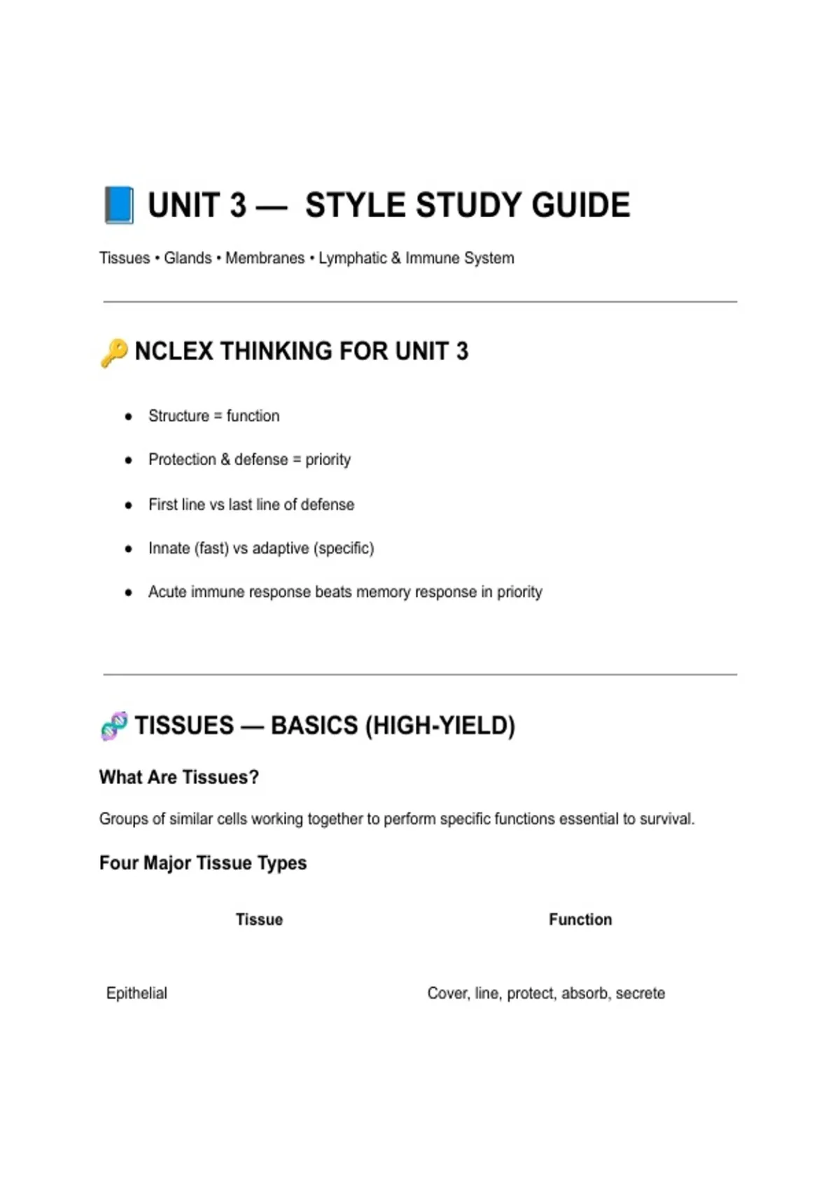 🧬 TISSUES — BASICS (HIGH-YIELD)