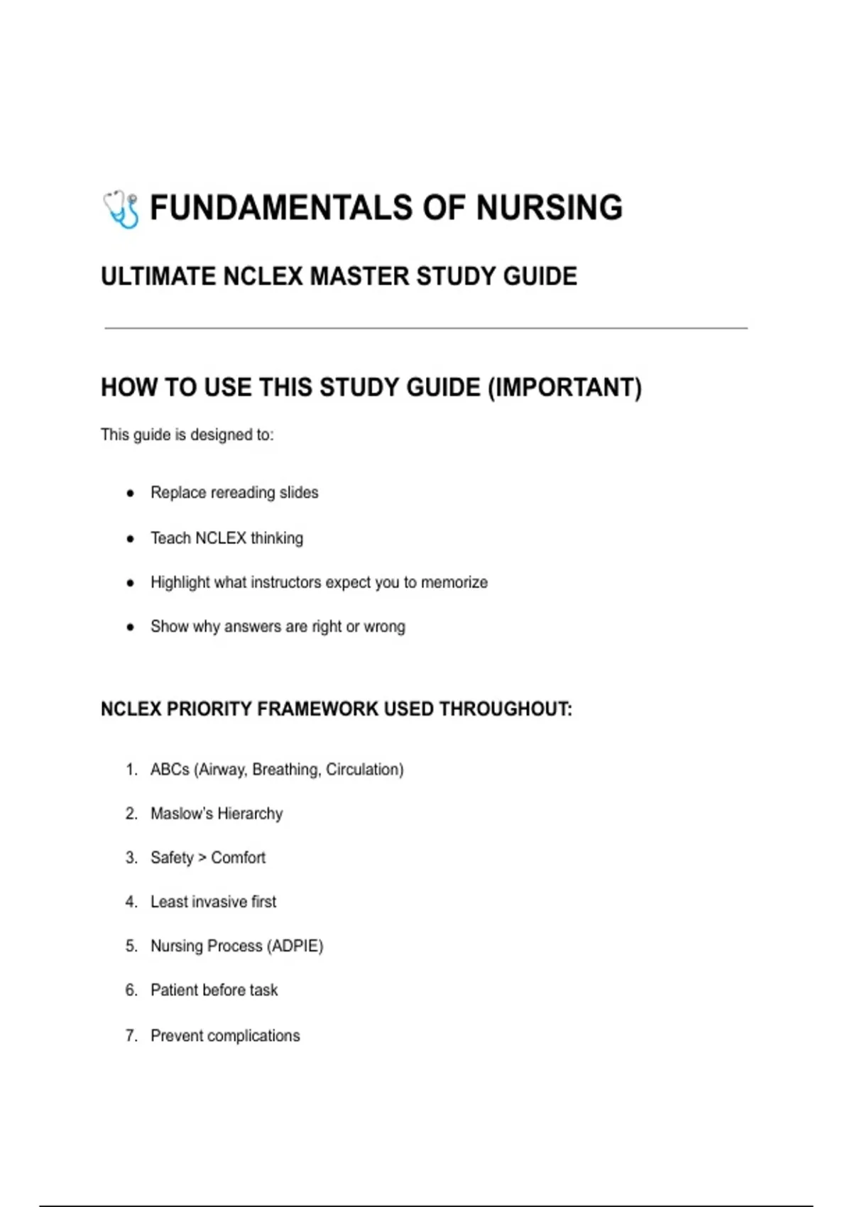 NCLEX PRIORITY FRAMEWORK USED THROUGHOUT: