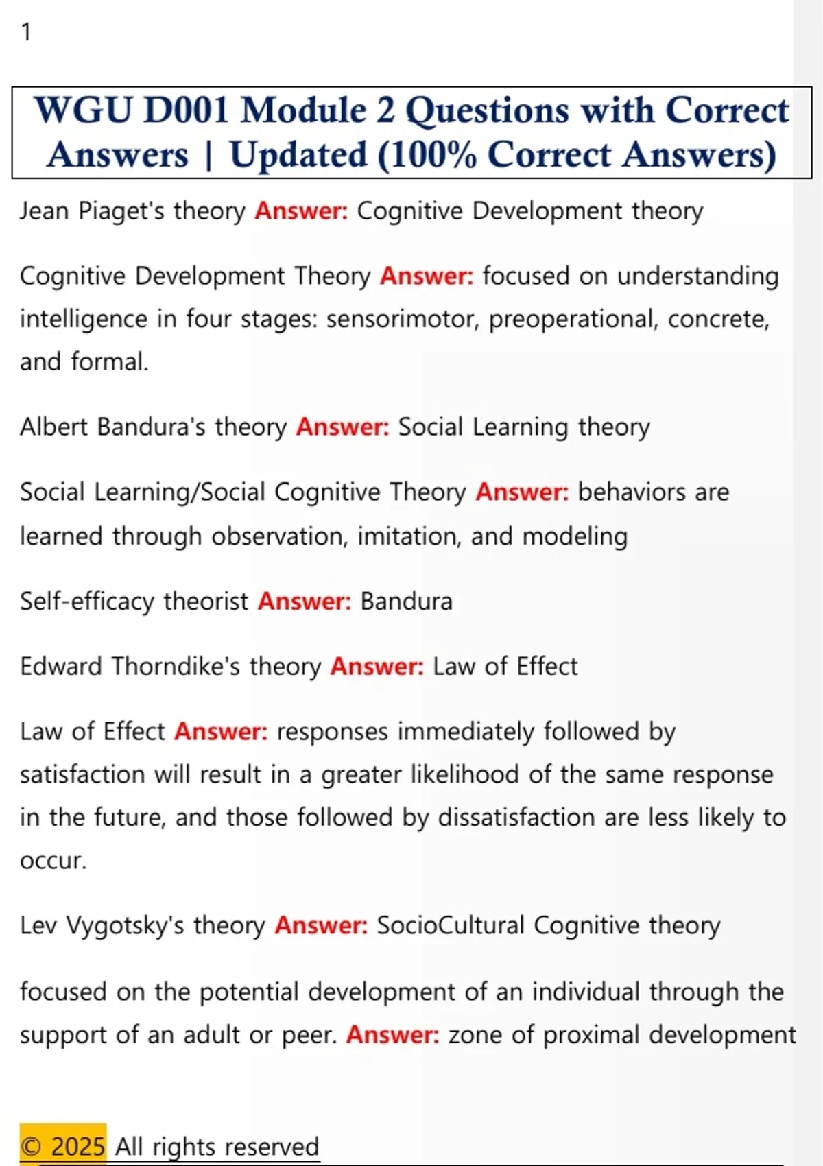 Social Learning/Social Cognitive Theory Answer: behaviors are