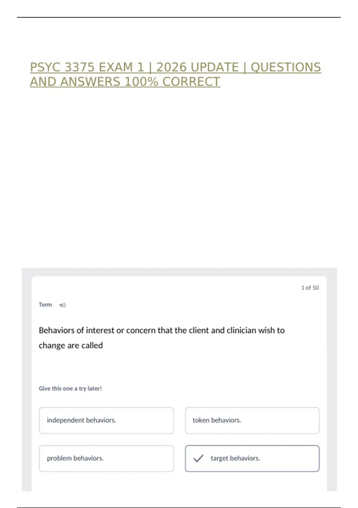 PSYC 3375 EXAM 1 | 2026 UPDATE | QUESTIONS AND ANSWERS 100% CORRECT