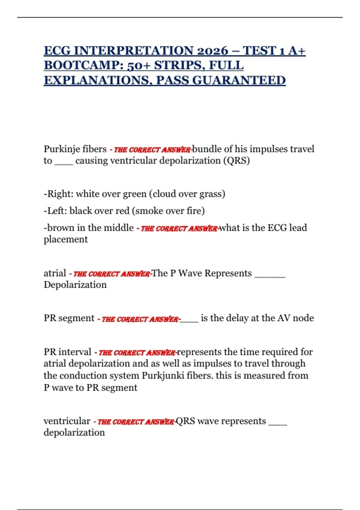 ECG INTERPRETATION 2026 – TEST 1 A+ BOOTCAMP: 50+ STRIPS, FULL EXPLANATIONS, PASS GUARANTEED