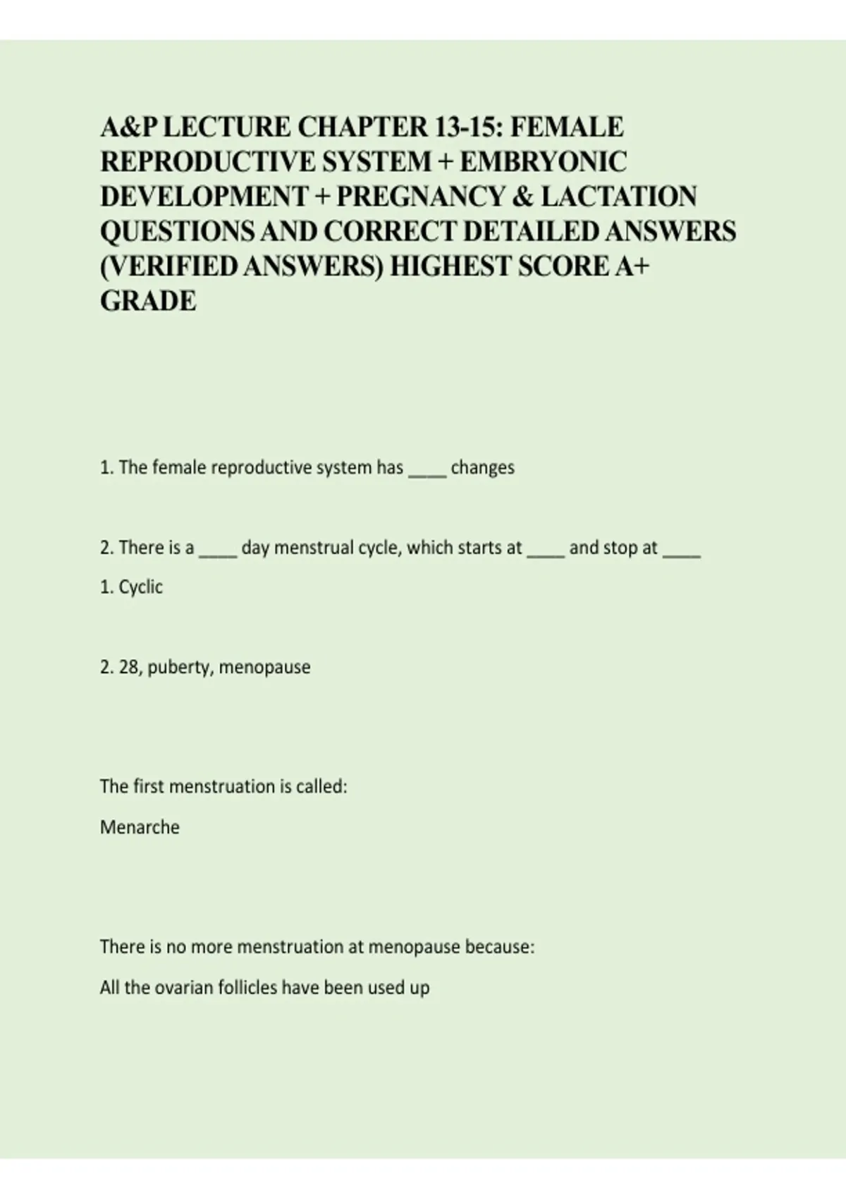 A&P LECTURE CHAPTER 13-15: FEMALE