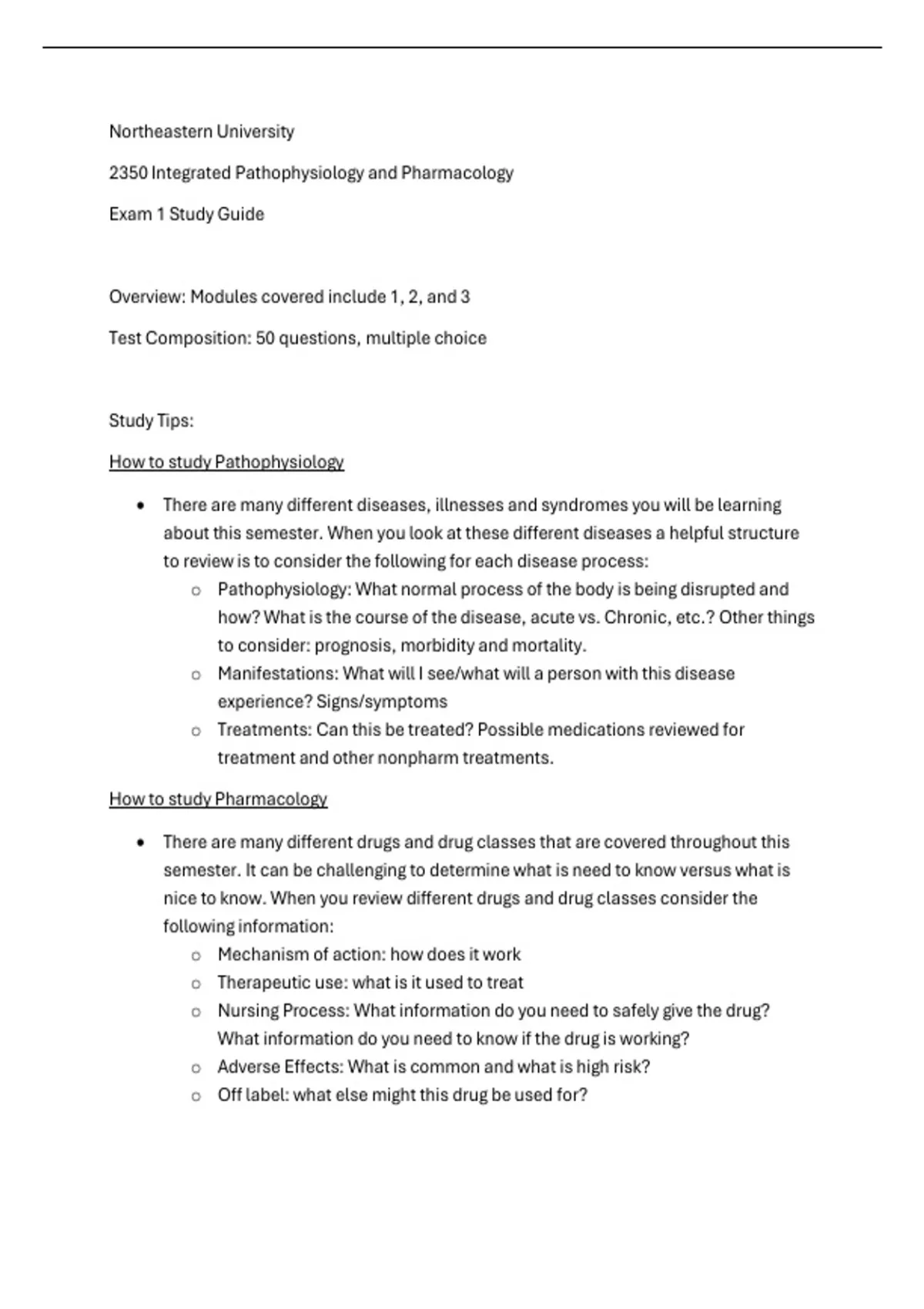 and Pharmacology Exam 1 Study Guide.pdf