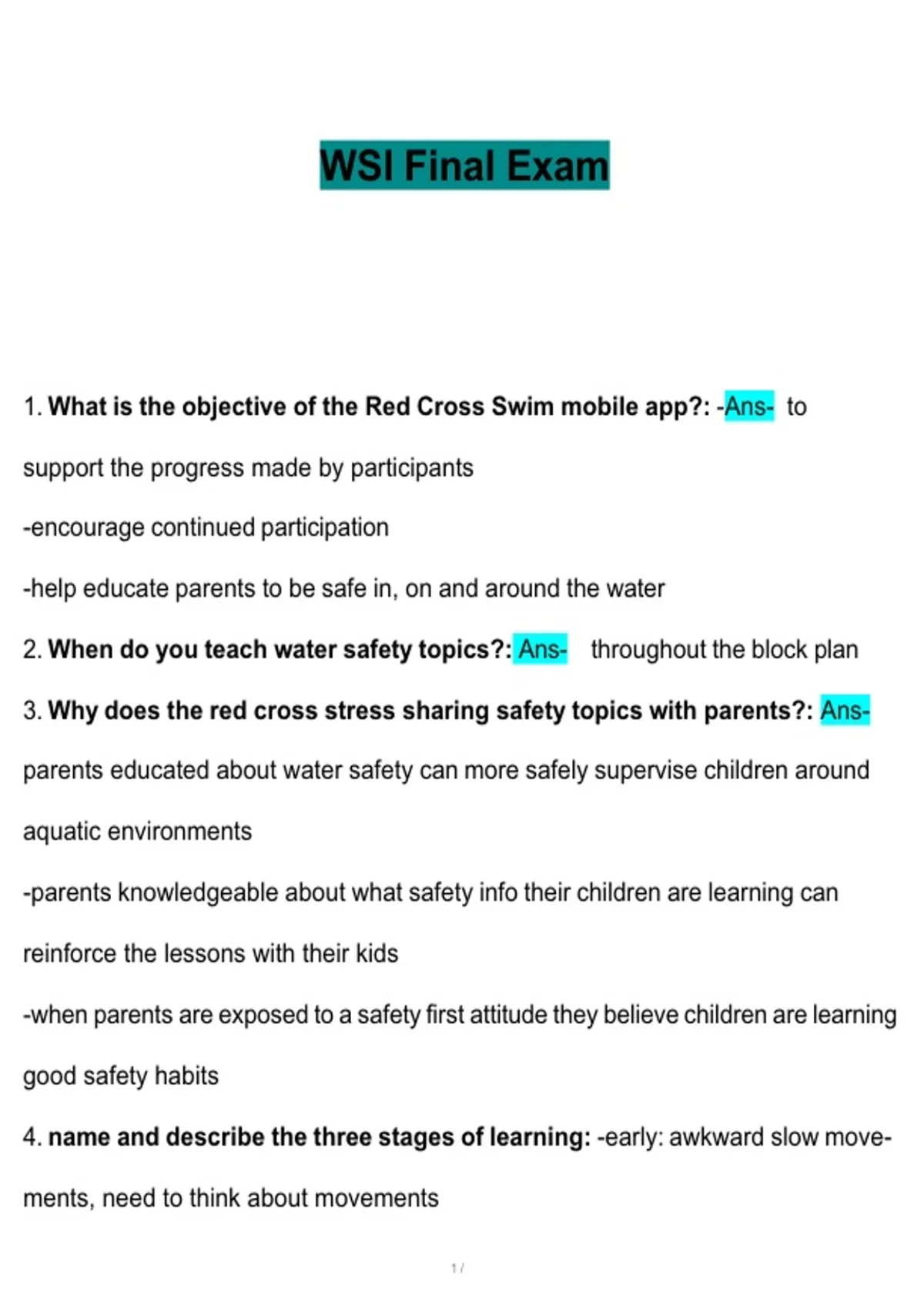This document provides exam-focused questions and study material designed to support preparation for the WSI final exam. It covers key instructional principles, safety guidelines, and assessment standards commonly tested in Water Safety Instructor certification exams.