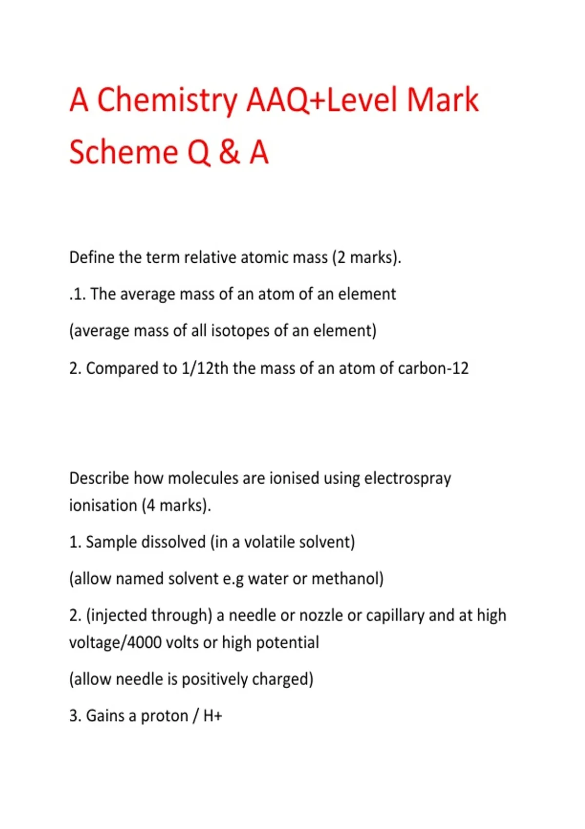 A Chemistry AAQ+Level Mark Scheme Q & A