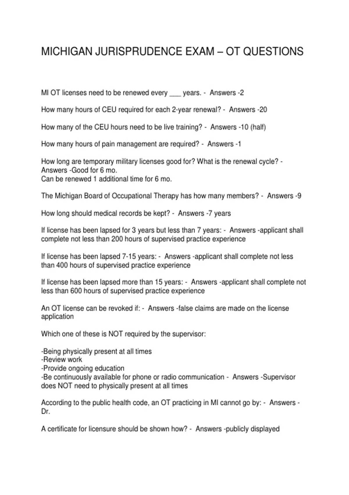 MICHIGAN JURISPRUDENCE EXAM – OT QUESTIONS