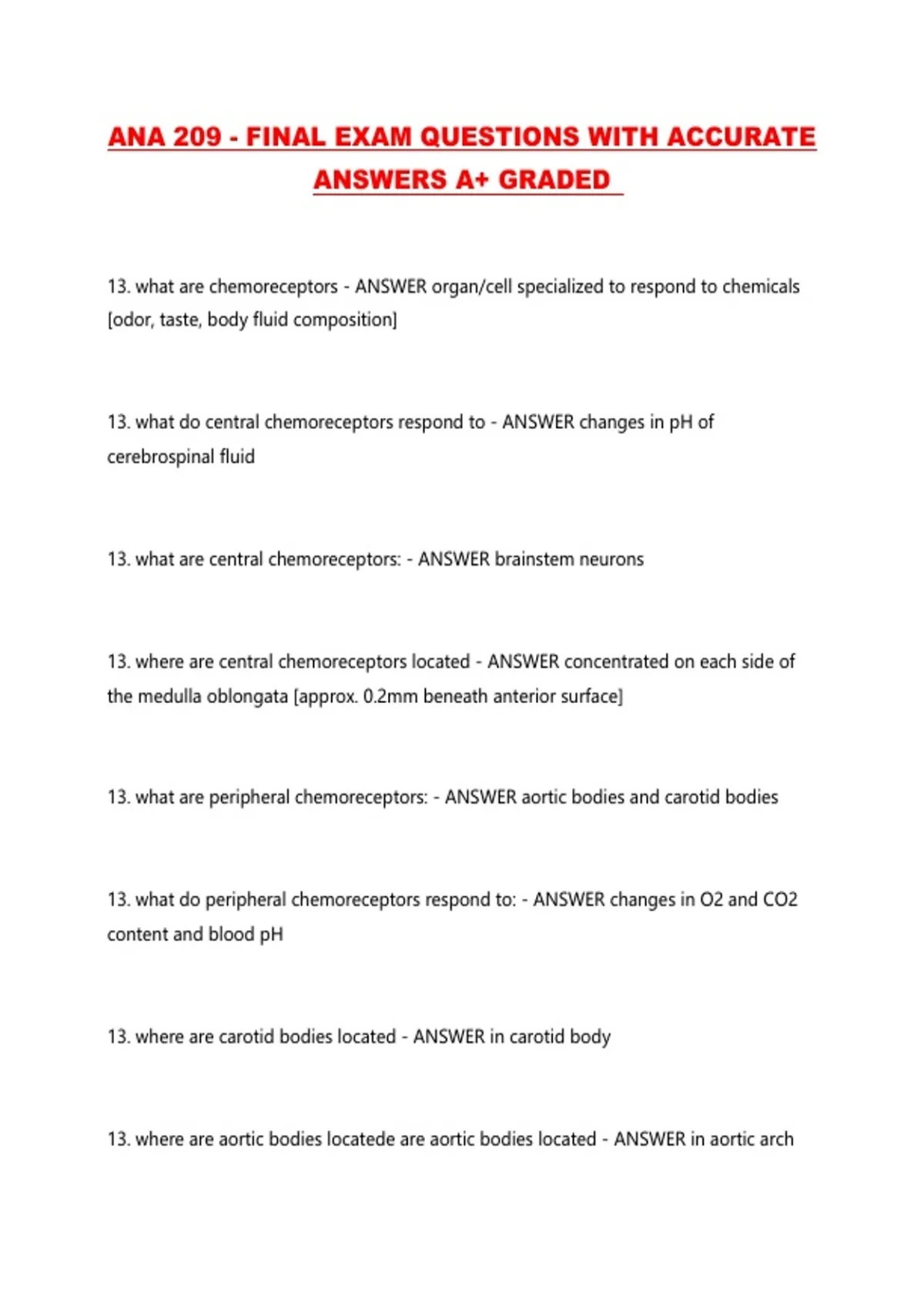 ANA 209 - FINAL EXAM QUESTIONS WITH ACCURATE