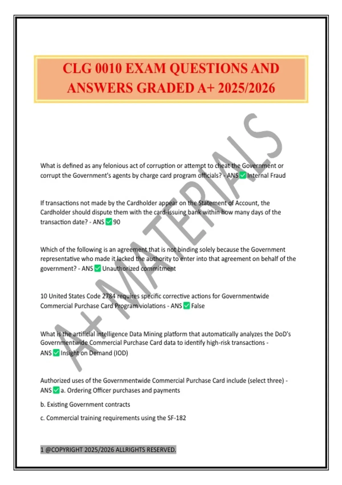 CLG 0010 EXAM QUESTIONS AND ANSWERS GRADED A+ 2025/2026