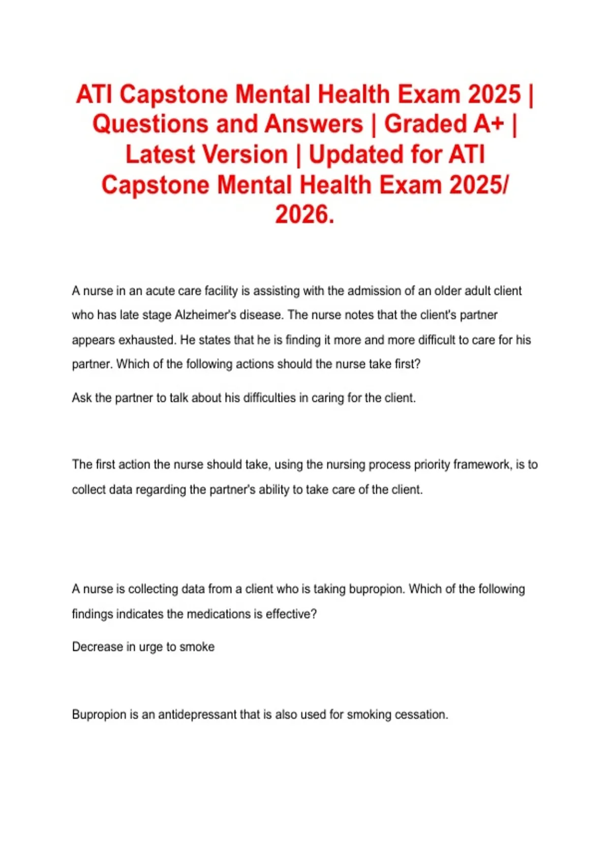 ,Page 2 of 62 ATI Capstone Mental Health Exam 2025.pdf ATI Capstone Mental Health Exam 2025