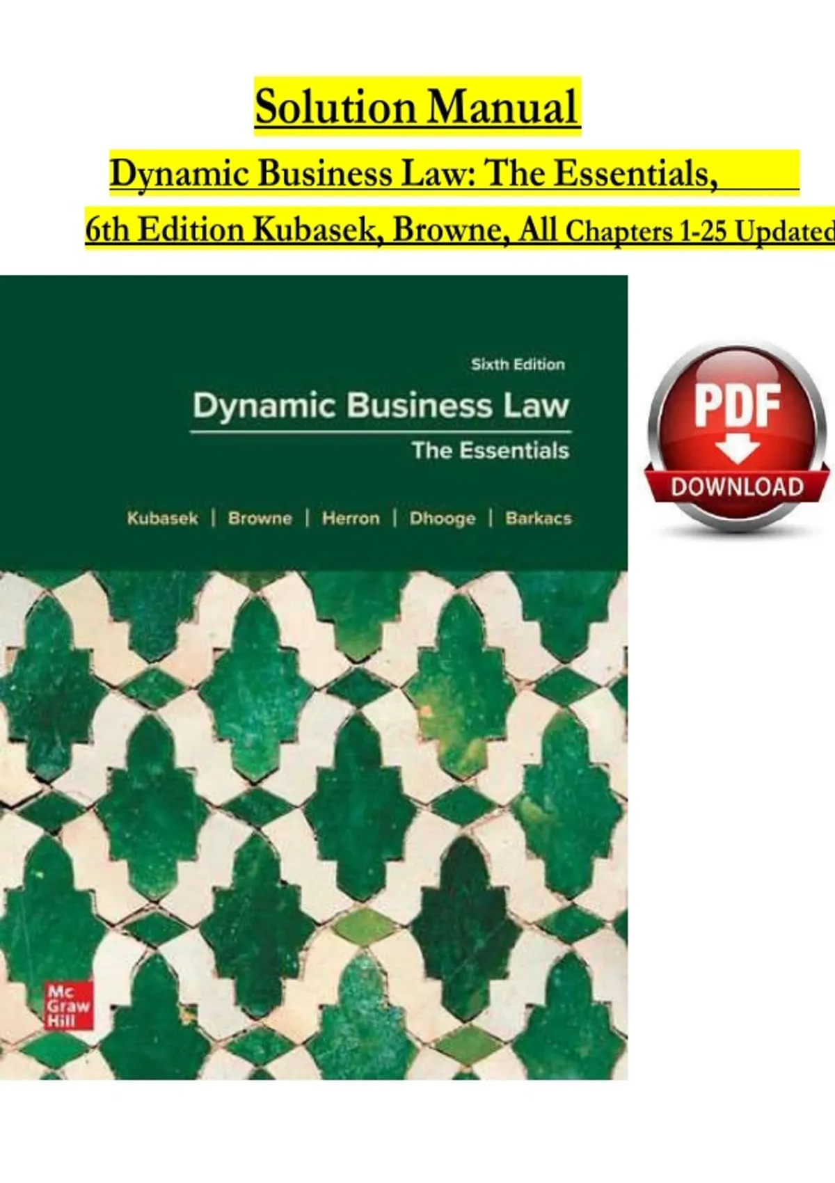 Solution manual for dynamic business law the essentials 6th Edition Kubasek, Browne.
