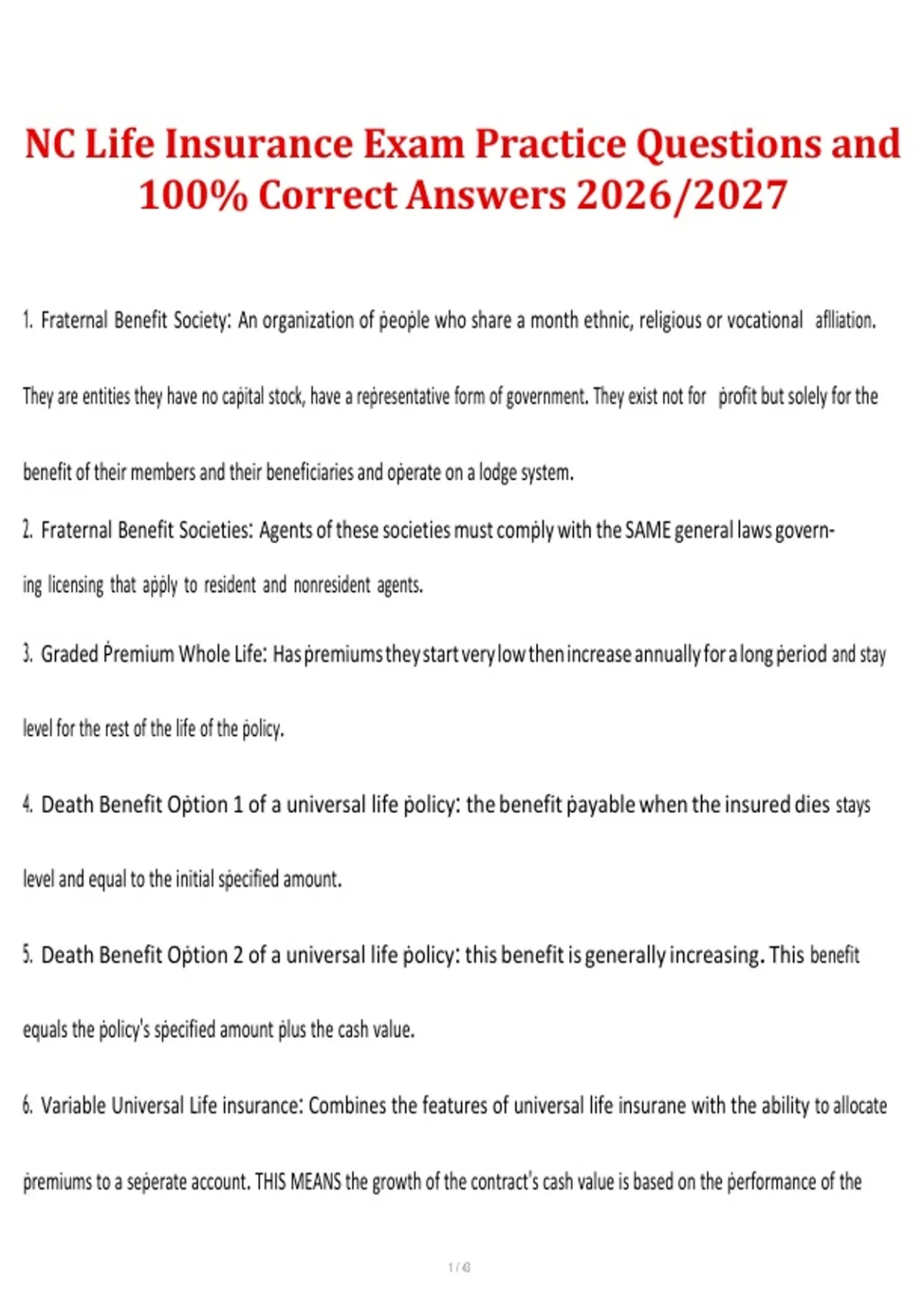 This document contains comprehensive practice exam questions with 100% verified correct answers for the North Carolina Life Insurance State Exam. It covers all essential state law and regulation topics, including licensing and appointment requirements, policy provisions, replacement rules, ethical conduct, advertising standards, and consumer protection, aligned with the 2026/2027 exam requirements.