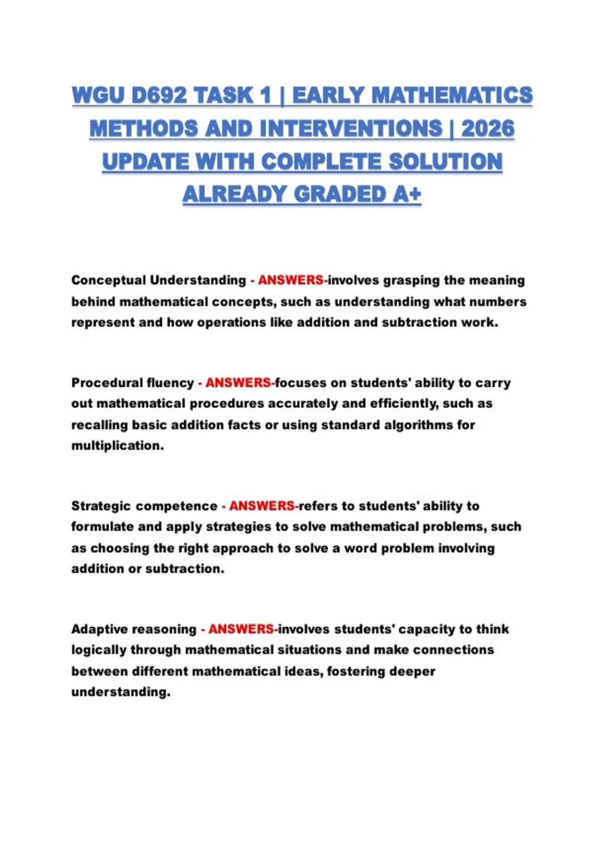 WGU D692 TASK 1 | EARLY MATHEMATICS