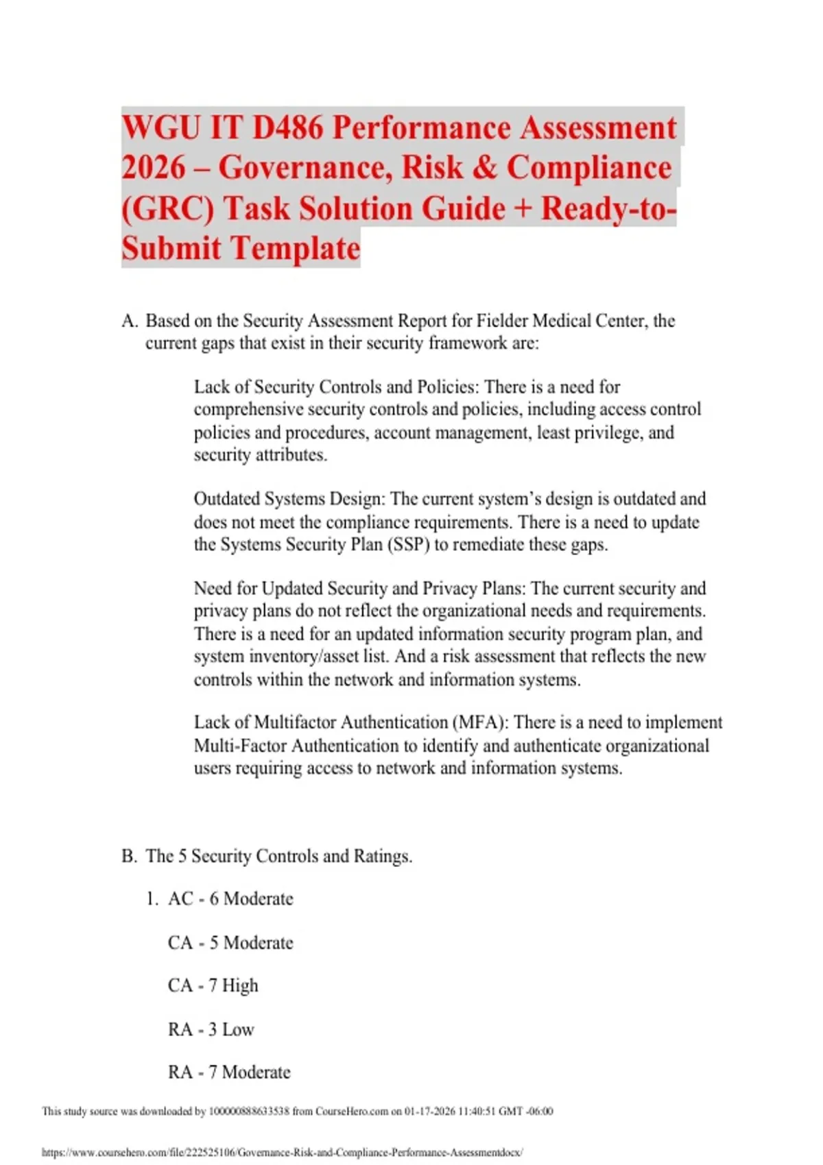 WGU IT D486 Performance Assessment 2026 – Governance, Risk & Compliance (GRC) Task Solution Guide + Ready-to- Submit Template