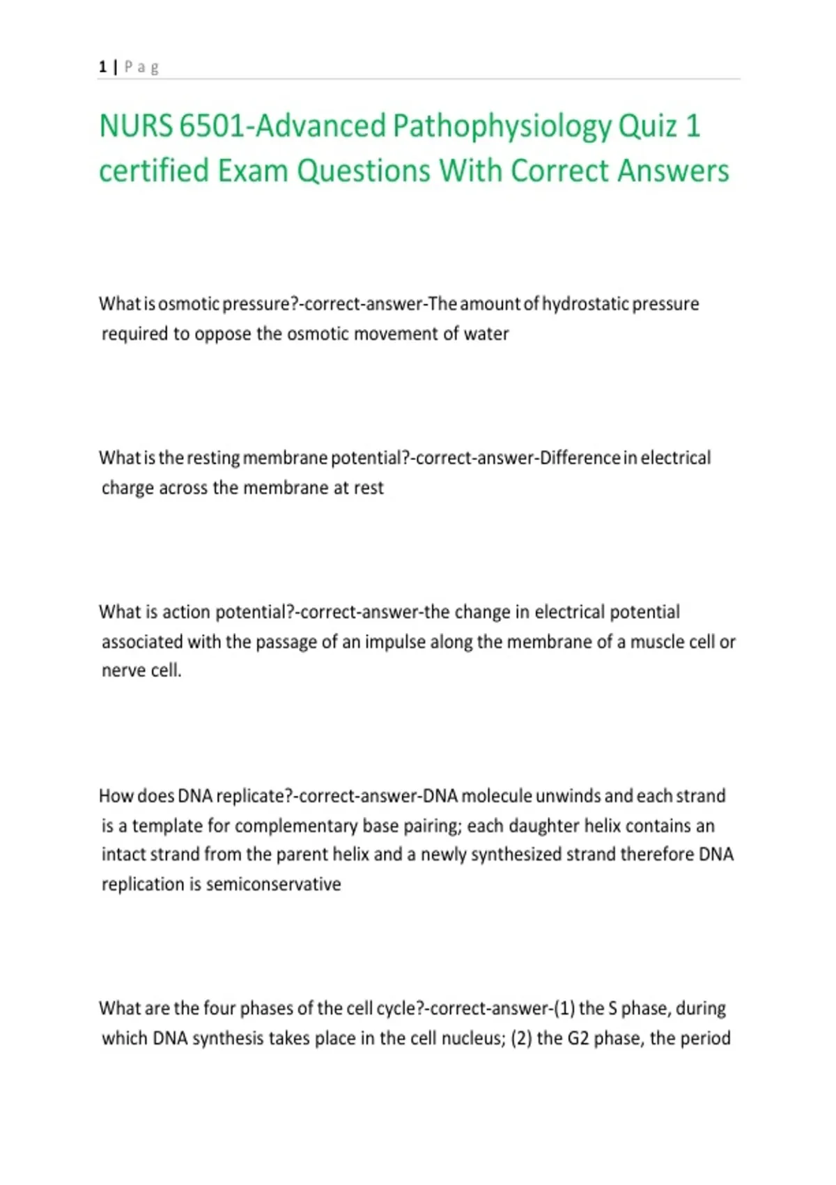 NURS 6501-Advanced Pathophysiology Quiz 1 certified Exam Questions With Correct Answers