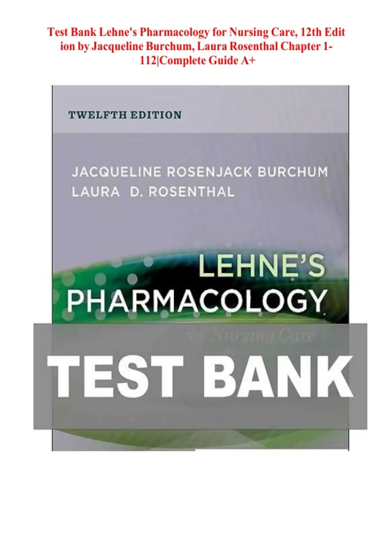 TEST BANK FOR Lehne's Pharmacology for Nursing Care, 12th Edition ( Jacqueline Burchum, Laura Rosenthal; 2024) Latest Edition ISBN: 9780443107108 COMPLETE GUIDE ALL CHAPTERS COVERED 100% VERIFIED A+ GRADE ASSURED!!!!! NEW LATEST UPDATE!!!!!