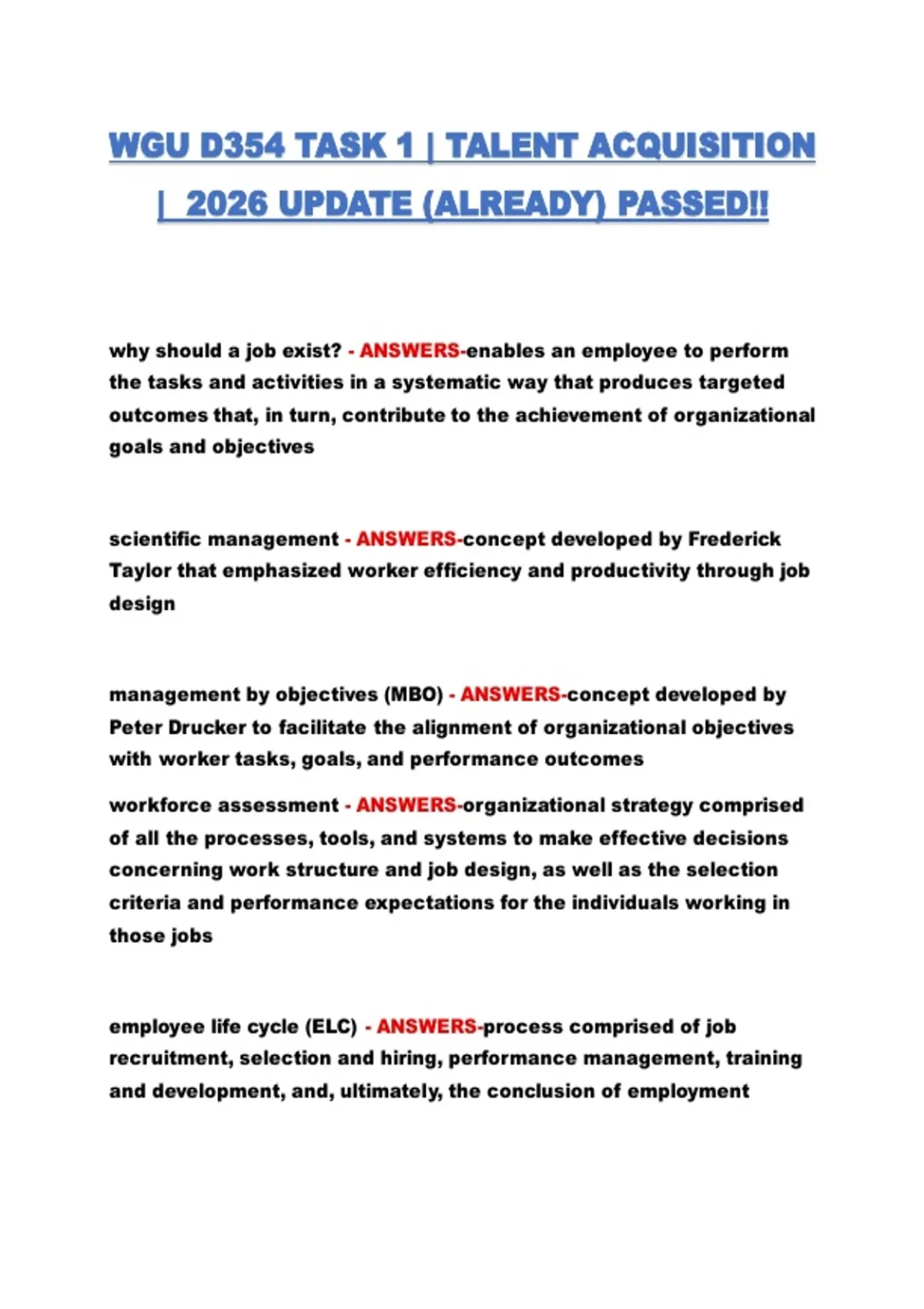 WGU D354 Task 1 | Talent Acquisition | 2026 Update – Already Passed / Complete Solution