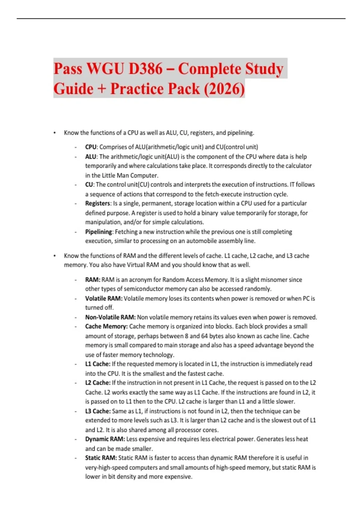 • Know the functions of a CPU as well as ALU, CU, registers, and pipelining.