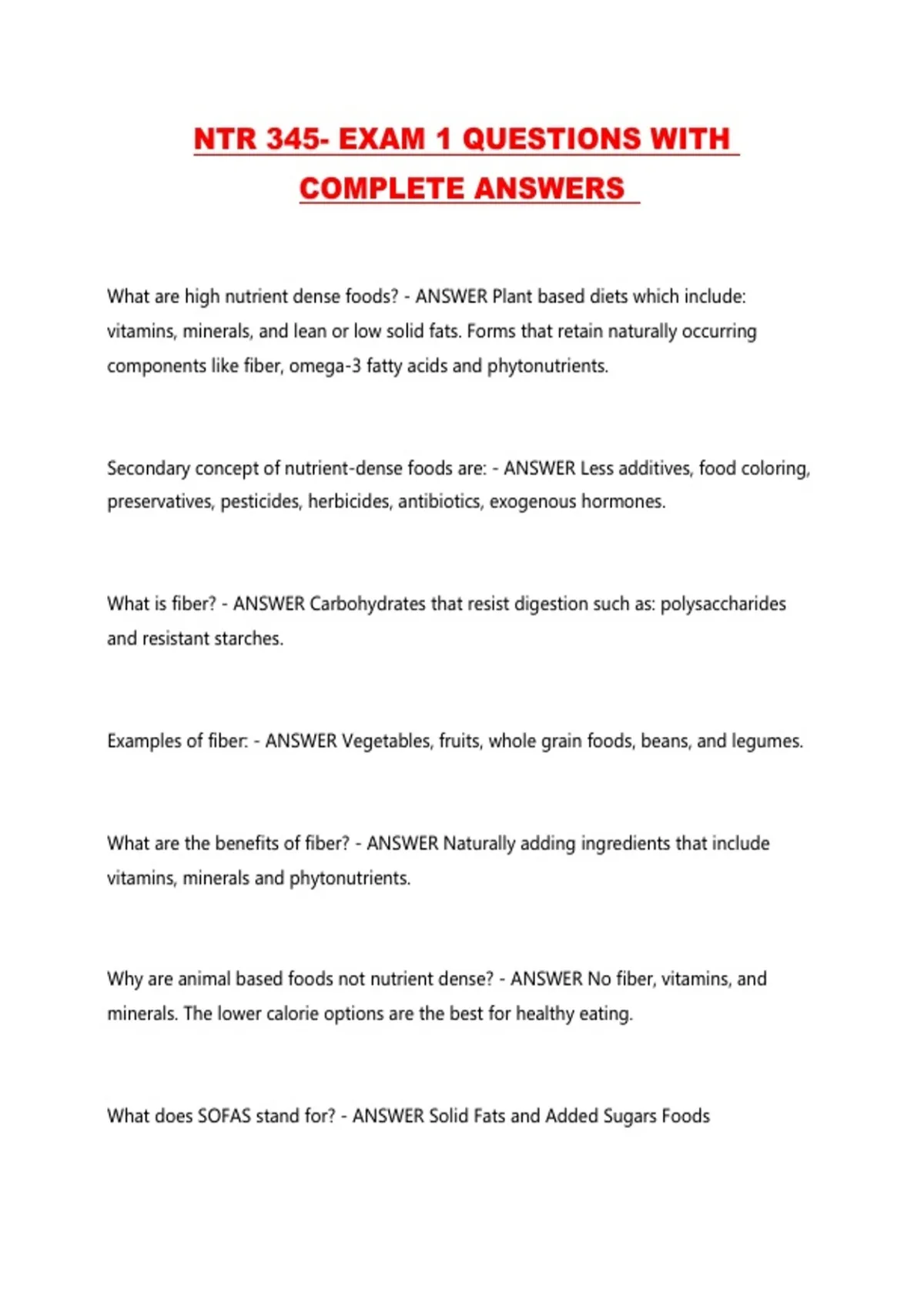 NTR 345- EXAM 1 QUESTIONS WITH COMPLETE ANSWERS ...