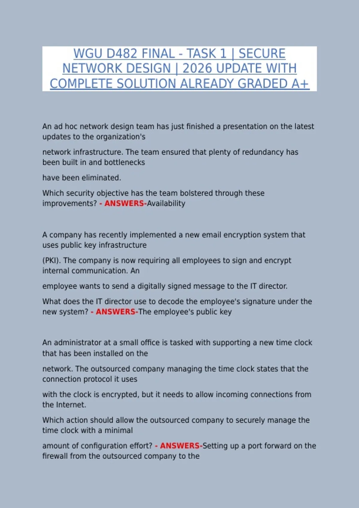 WGU D482 FINAL - TASK 1 | SECURE NETWORK DESIGN | 2026 UPDATE WITH COMPLETE SOLUTION ALREADY GRADED A+