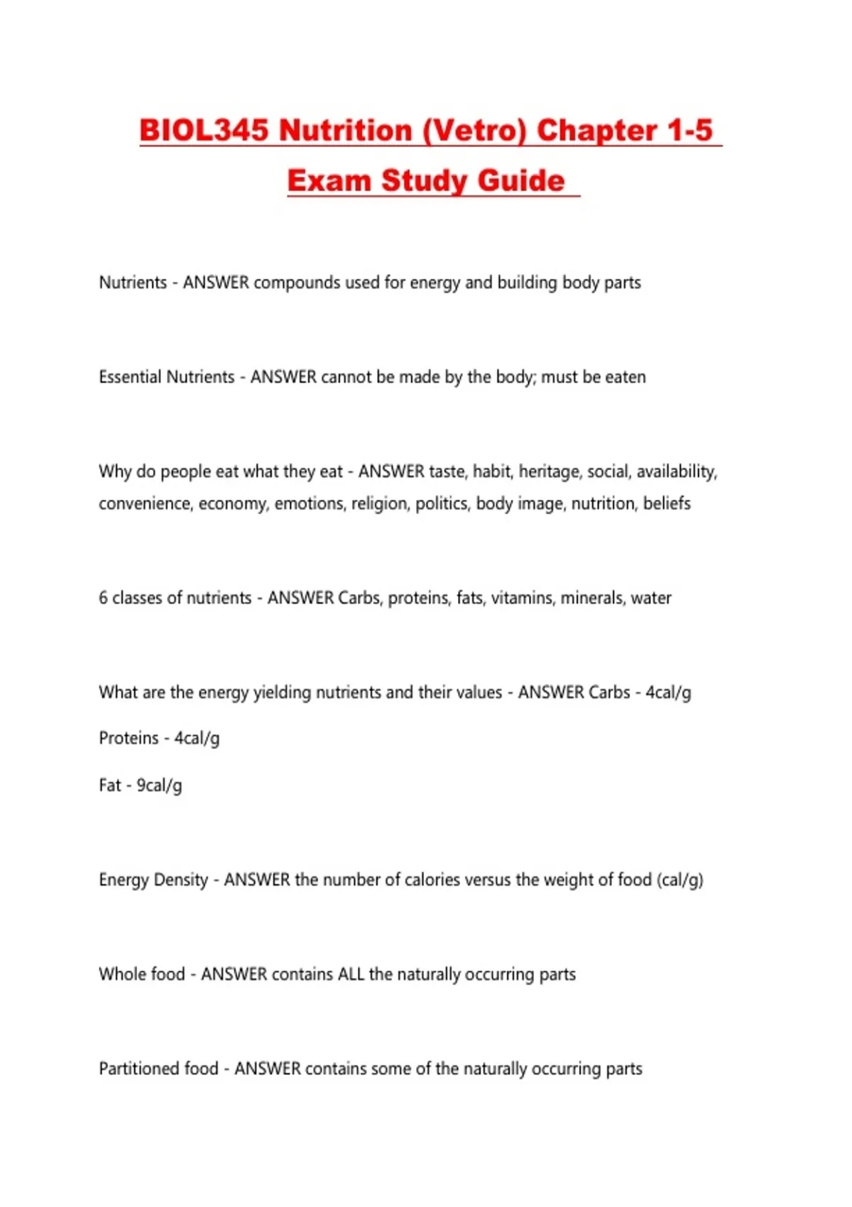 BIOL345 Nutrition (Vetro) Chapter 1-5