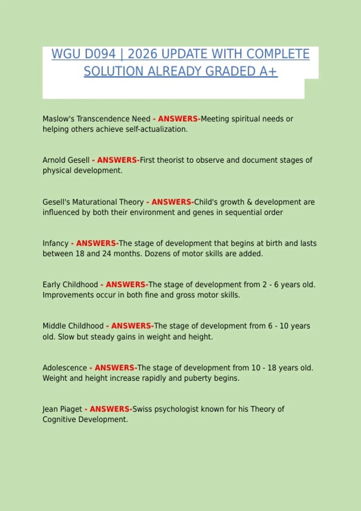 Gesell's Maturational Theory - ANSWERS-Child's growth & development are