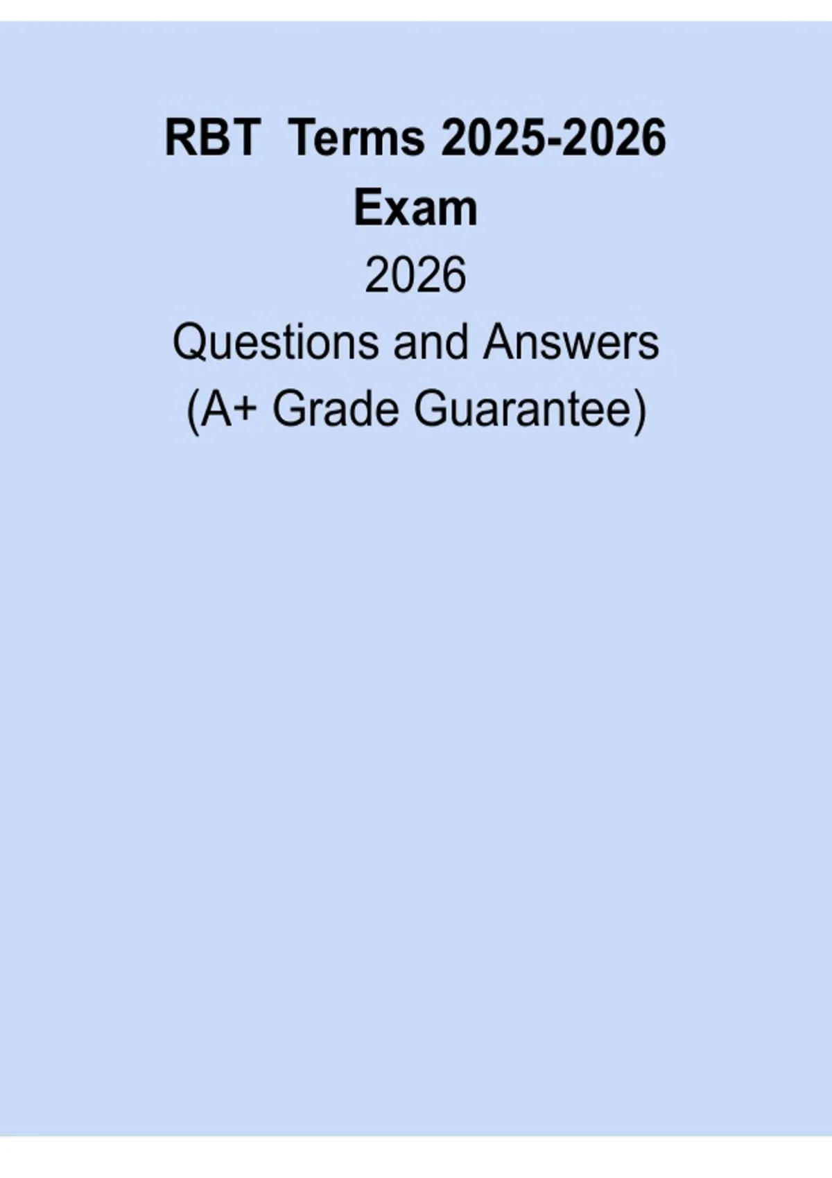 RBT Exam Terms 2025–2026 is a focused terminology and definitions guide designed to help candidates master the key vocabulary tested on the Registered Behavior Technician certification exam. This resource covers essential ABA concepts, RBT Task List terminology, measurement definitions, behavior principles, ethics, and professional conduct terms aligned with current exam standards. Ideal for quick reference and exam review, this guide supports stronger comprehension, accurate concept recall, and improved performance on the RBT certification exam.