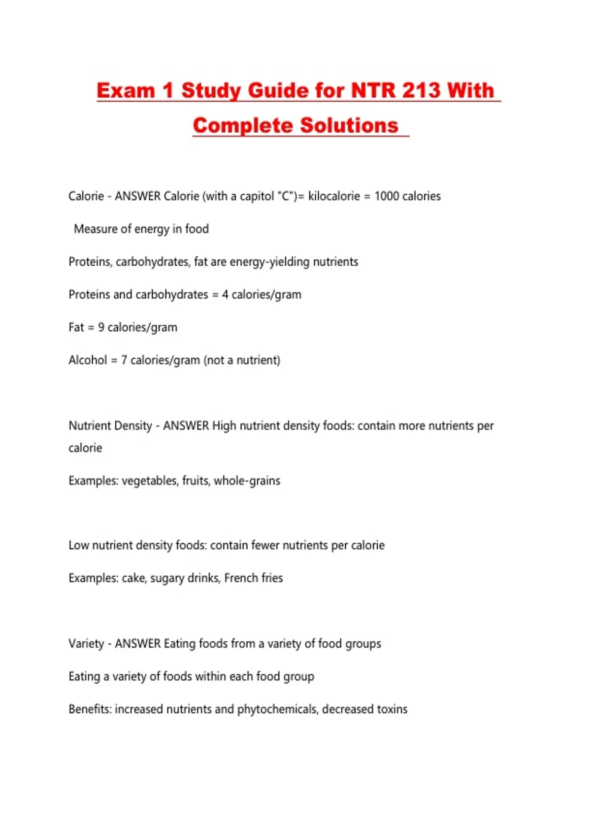 Exam 1 Study Guide for NTR 213 With