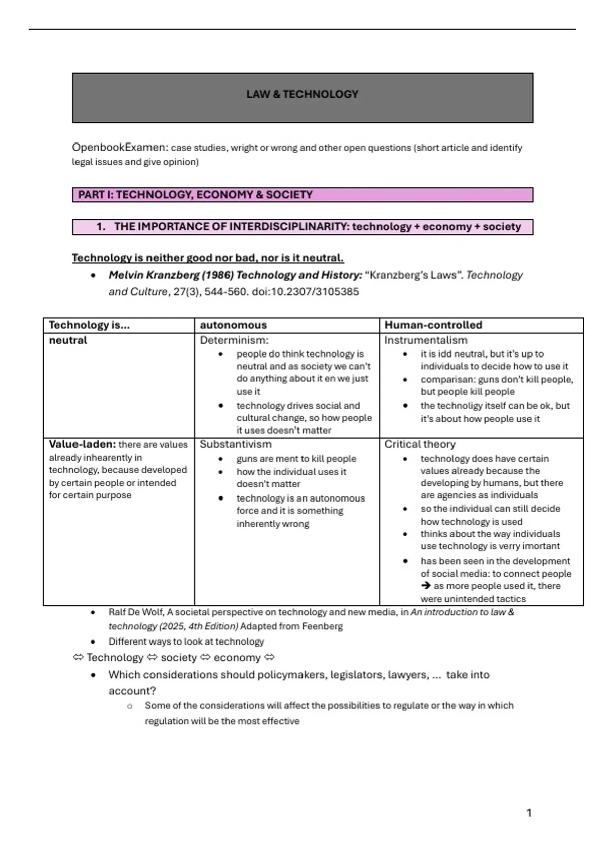 • Melvin Kranzberg (1986) Technology and History: “Kranzberg’s Laws”. Technology
