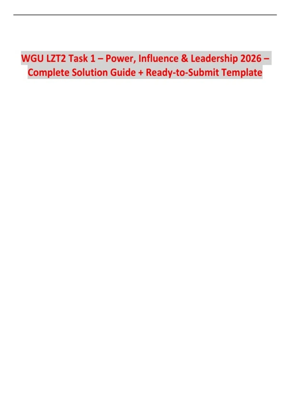 WGU LZT2 Task 1 – Power, Influence & Leadership 2026 – Complete Solution Guide + Ready-to-Submit Template