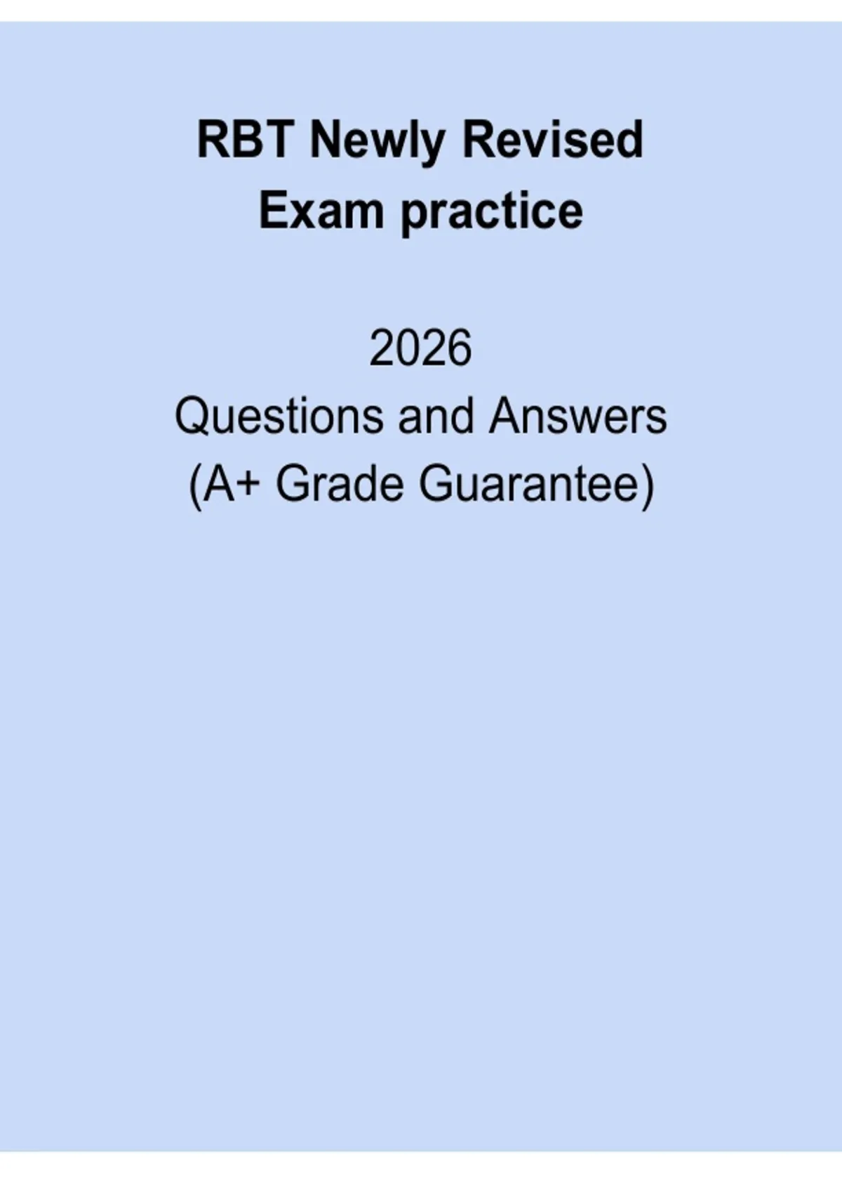 BT Newly Revised 2026 Exam Practice is an updated practice resource designed to reflect the most current content and testing standards of the Registered Behavior Technician certification exam. This revised exam practice set covers all RBT Task List modules, including ABA principles, measurement, assessment, skill acquisition, behavior reduction, documentation, ethics, and professional conduct. Ideal for candidates seeking up-to-date preparation, this resource supports accurate exam readiness, strengthened knowledge application, and confident performance on the 2026 RBT exam.