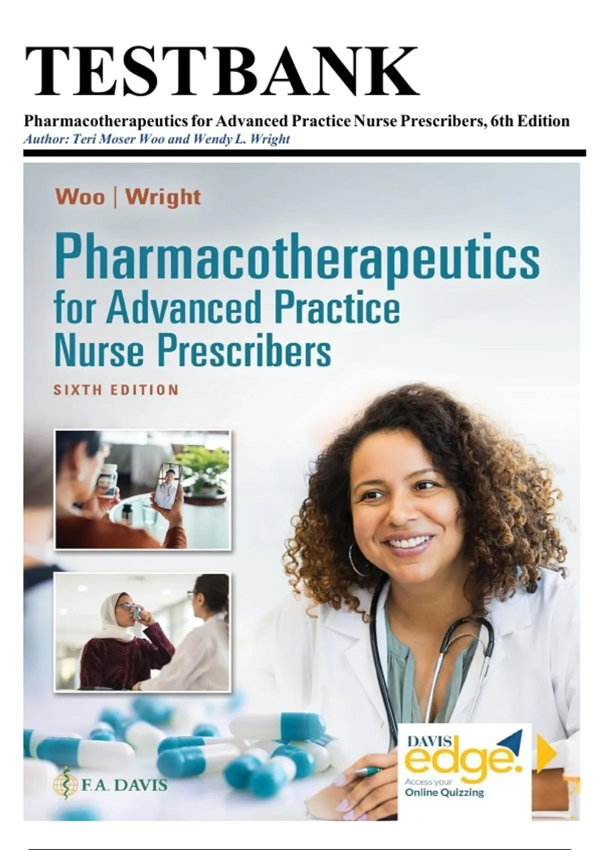 TEST BANK FOR Pharmacotherapeutics for Advanced Practice Nurse Prescribers, 6th Edition by Teri Moser Woo and Wendy L. Wright ISBN:9781719648035 COMPLETE GUIDE ALL CHAPTERS COVERED 100% VERIFIED A+ GRADE ASSURED!!!!! NEW LATEST UPDATE!!!!!