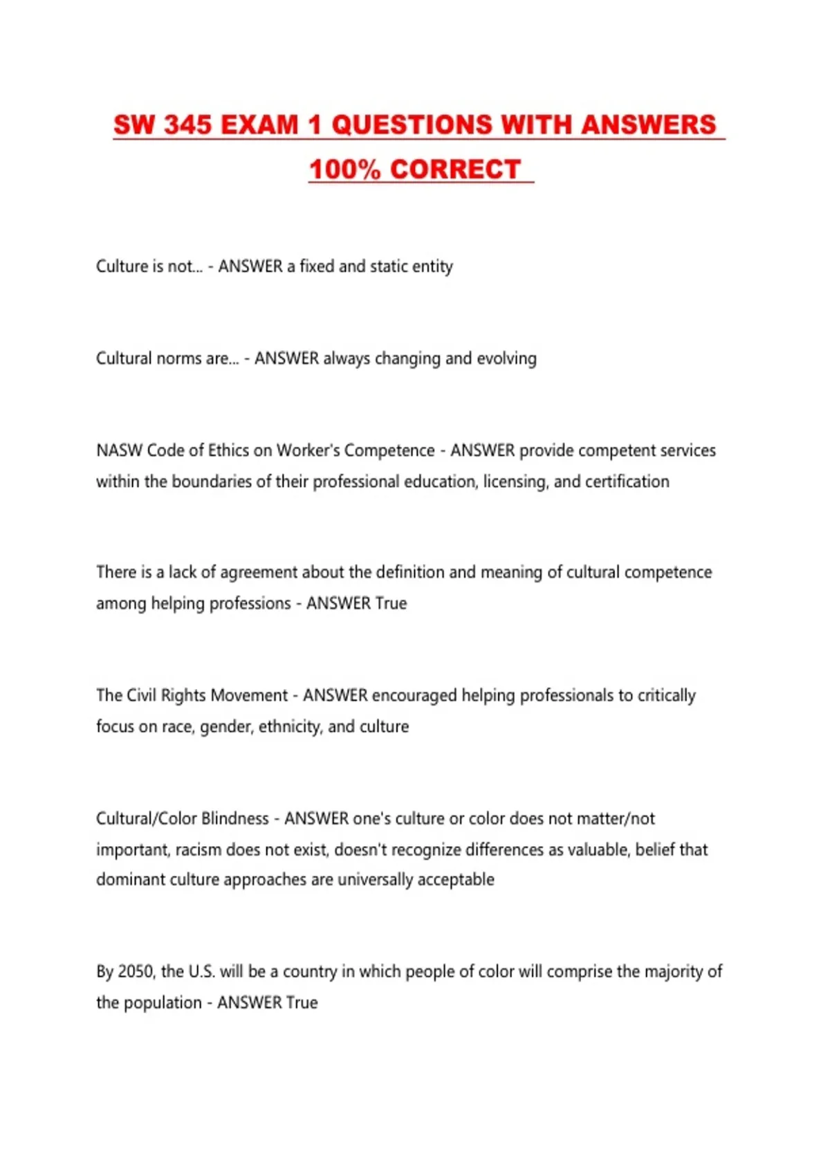 NASW Standards for Cultural Competence in Social Work - ANSWER 1. Ethics and Values